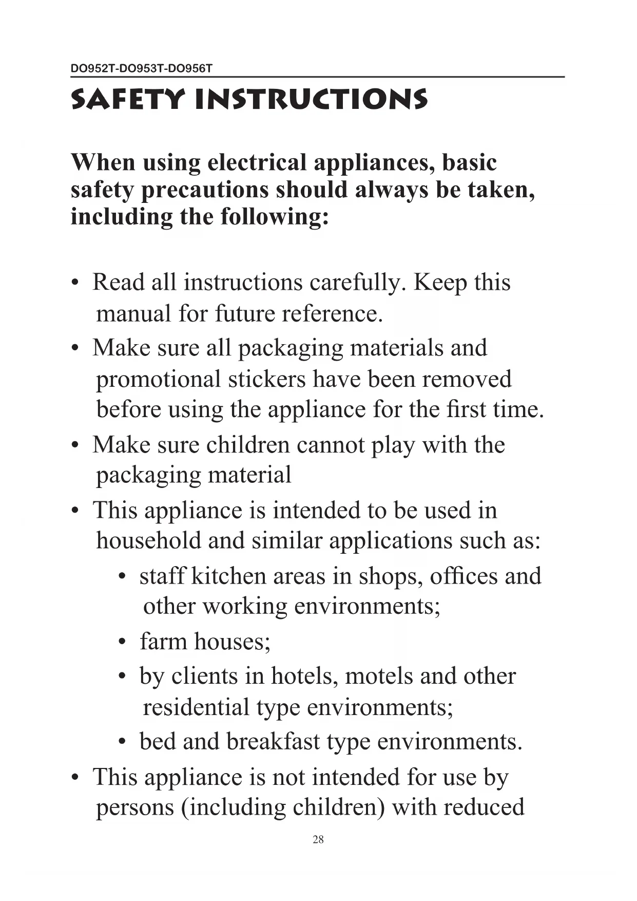 - This appliance is not intended for use by persons (including children) with reducedDO952T-DO953T-DO956T