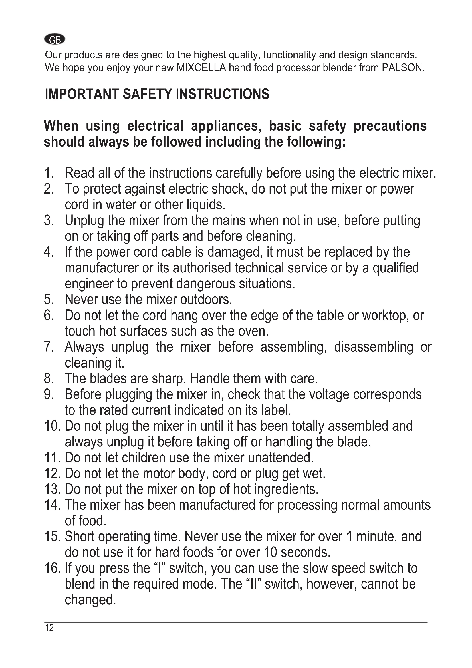 Our products are designed to the highest quality, functionality and design standards. We hope you enjoy your new MIXCELLA hand food processor blender from PALSON.