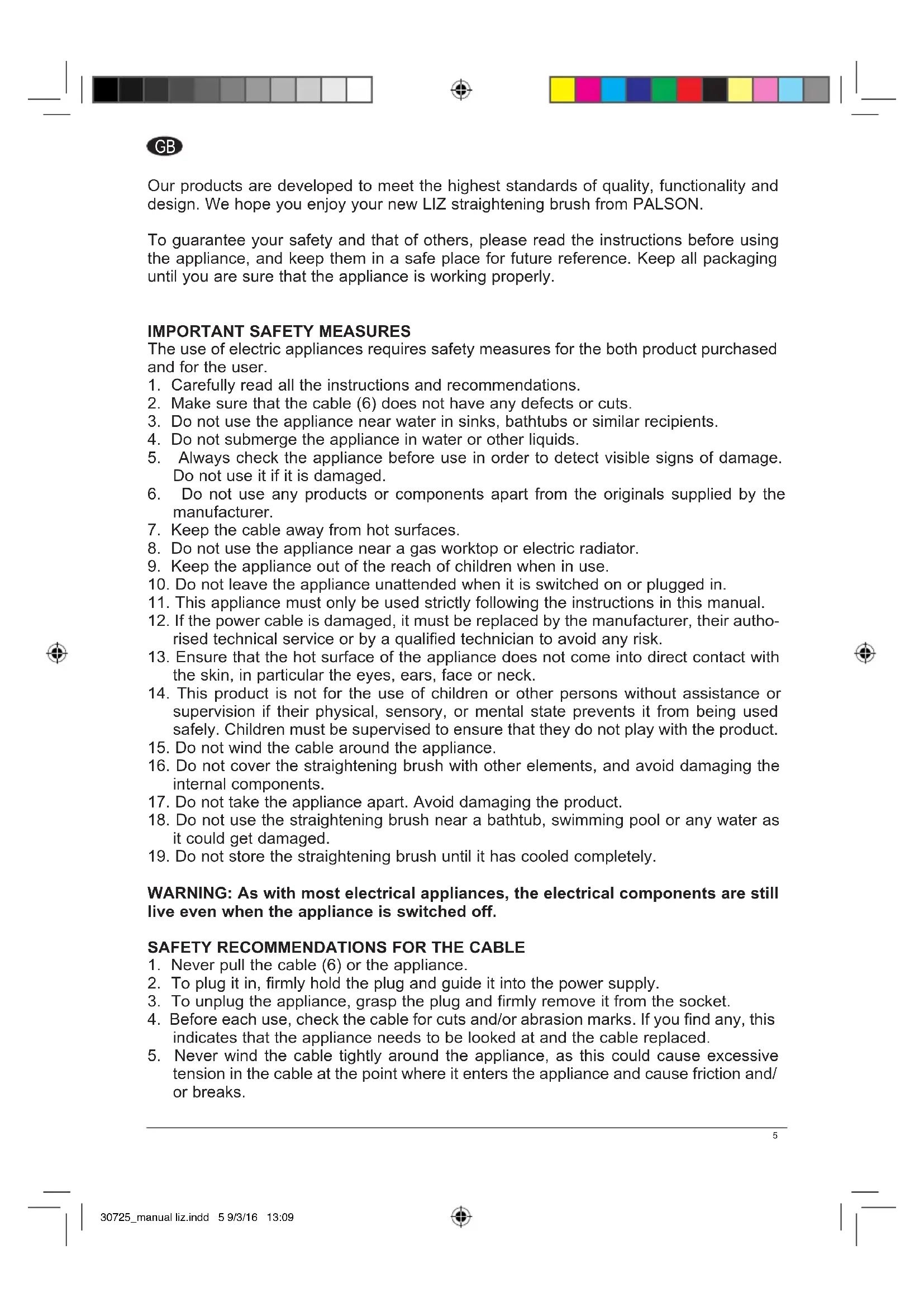 Our products are developed to meet the highest standards of quality, functionality and design. We hope you enjoy your new LIZ straightening brush from PALSON.