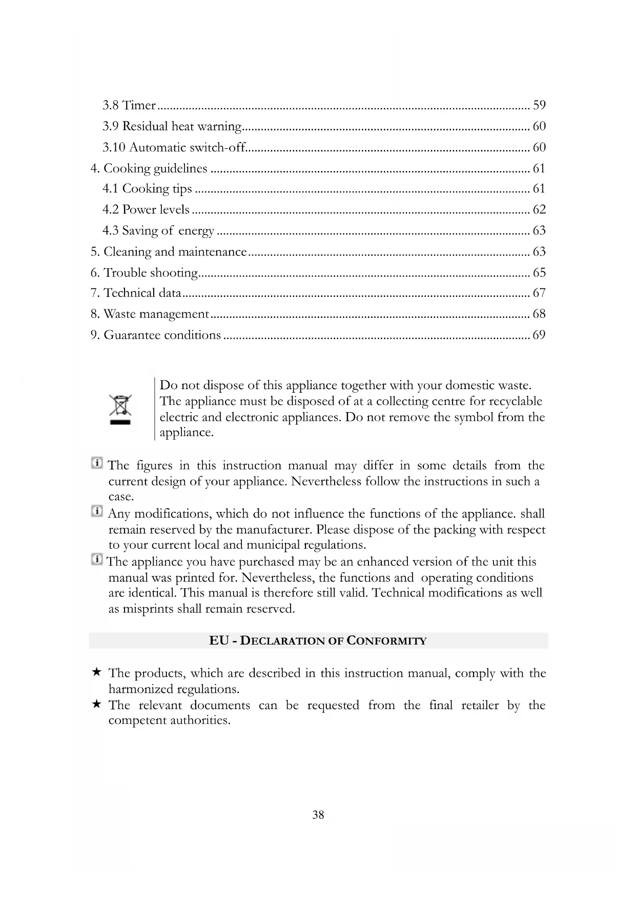 The figures in this instruction manual may differ in some details from the current design of your appliance. Nevertheless follow the instructions in such a case. Any modifications, which do not influence the functions of the appliance. shall remain reserved by the manufacturer. Please dispose of the packing with respect to your current local and municipal regulations. The appliance you have purchased may be an enhanced version of the unit this manual was printed for. Nevertheless, the functions and operating conditions are identical. This manual is therefore still valid. Technical modifications as well as misprints shall remain reserved.