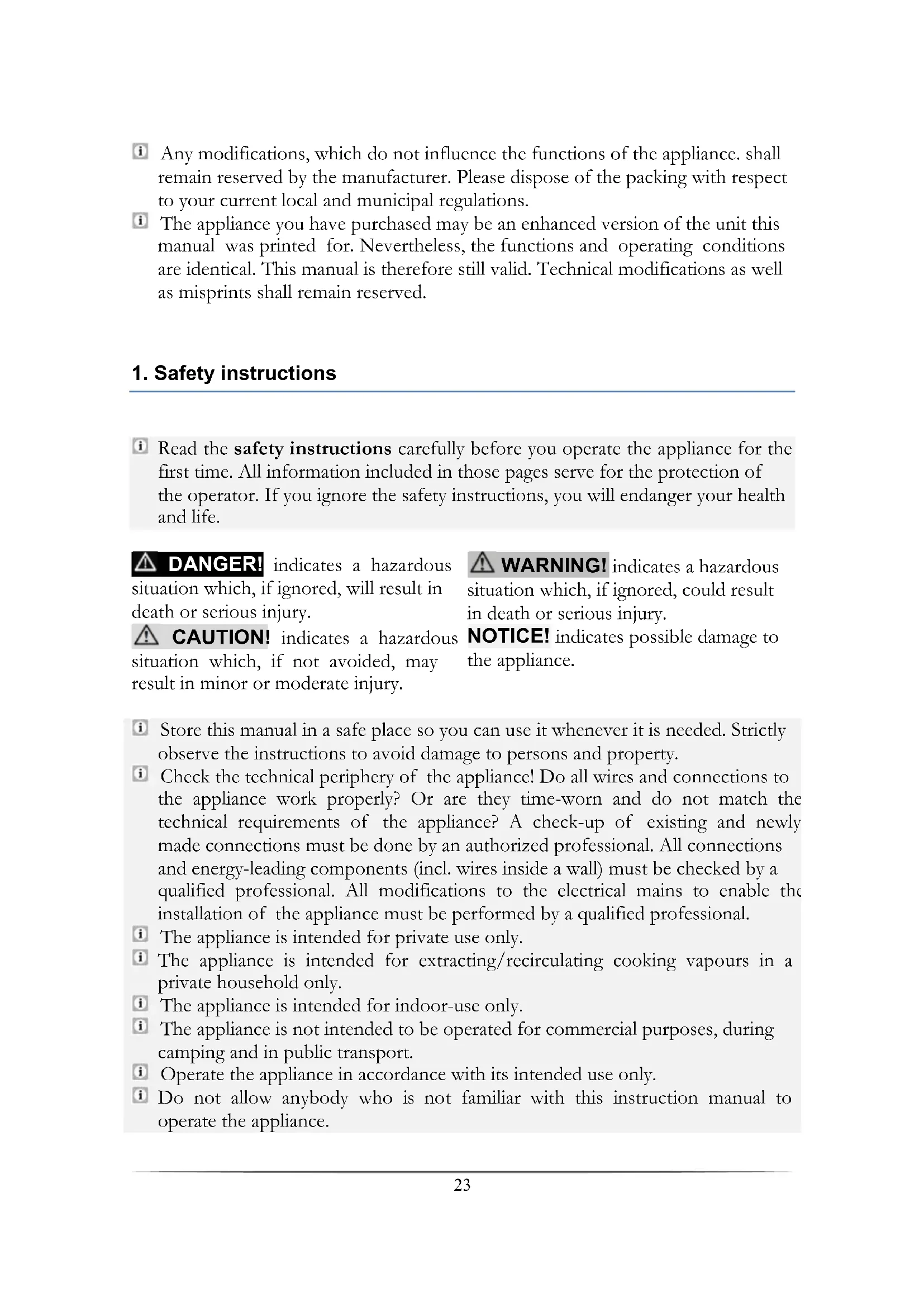 Read the safety instructions carefully before you operate the appliance for the first time. All information included in those pages serve for the protection of the operator. If you ignore the safety instructions, you will endanger your health and life.