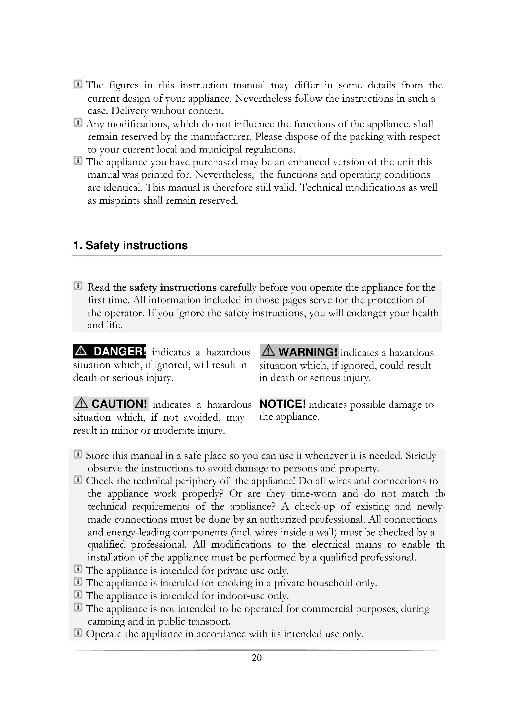 Read the safety instructions carefully before you operate the appliance for the first time. All information included in those pages serve for the protection of the operator. If you ignore the safety instructions, you will endanger your health and life.
