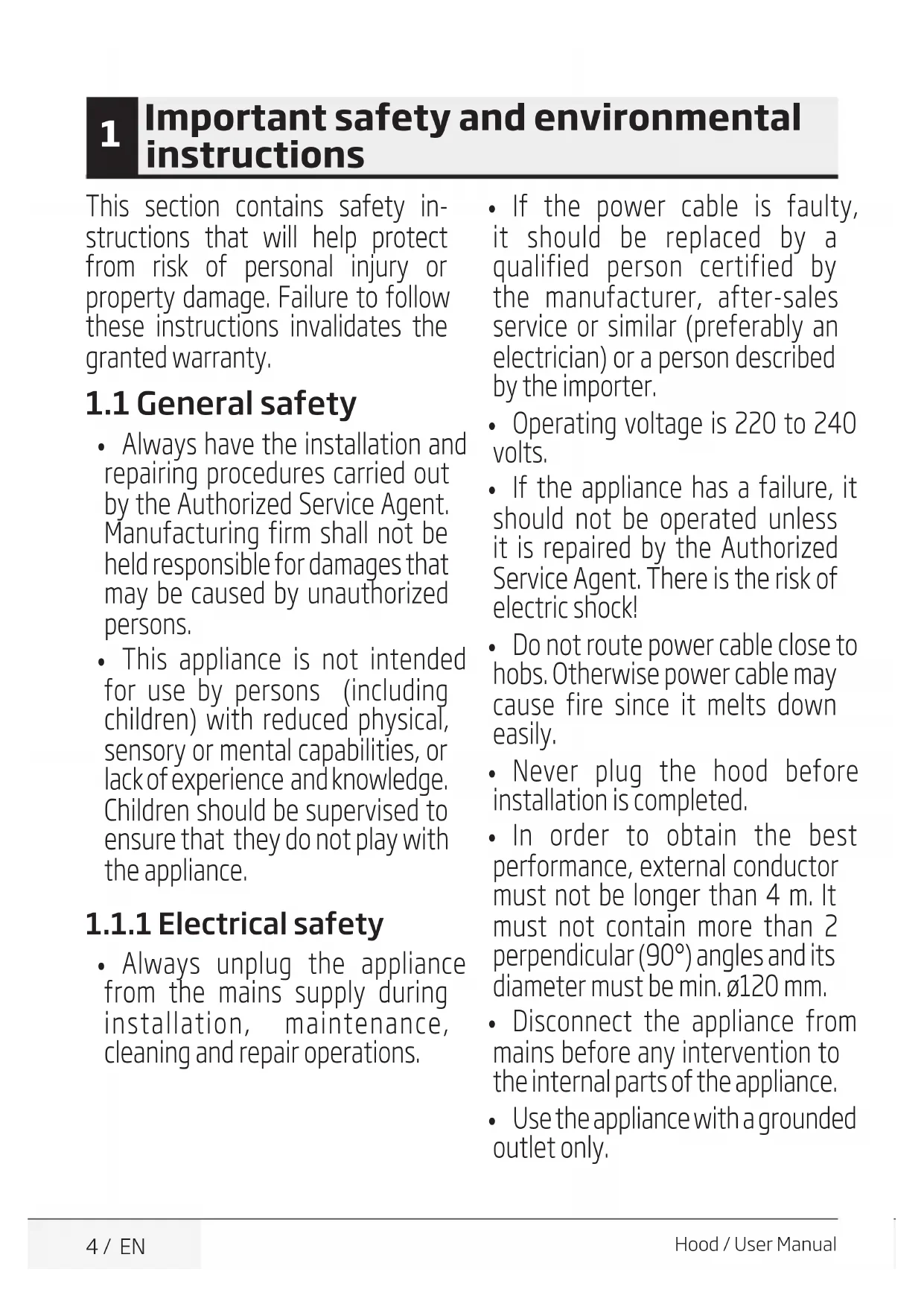 Important safety and environmental instructions7 / EN Hood / User Manual