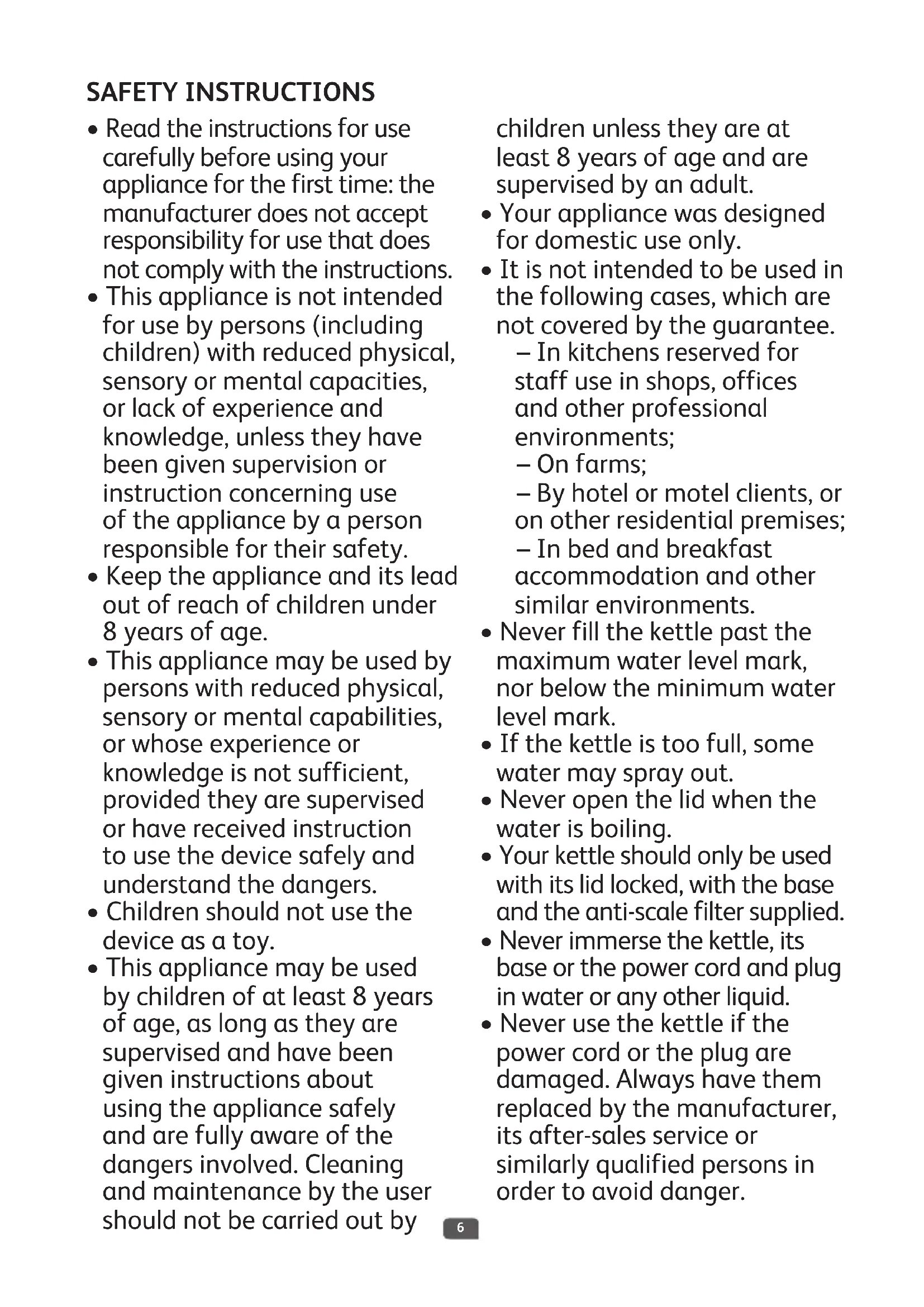 - Your kettle should only be used with its lid locked, with the base and the anti-scale filter supplied.