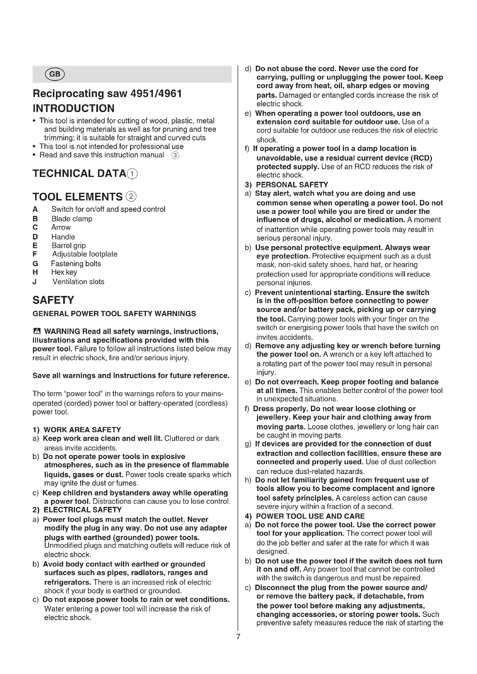 Reciprocating saw 4951/4961 INTRODUCTION