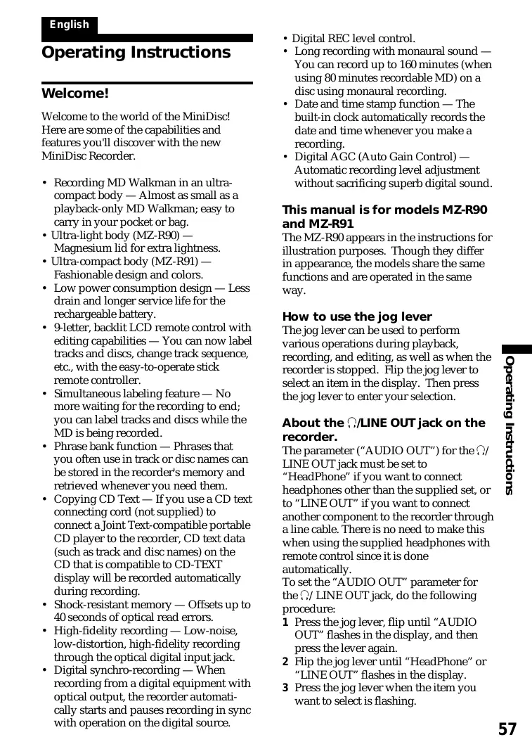 Operating Instructions Welcome! Welcome to the world of the MiniDisc! Here are some of the capabilities and features you'll discover with the new MiniDisc Recorder.