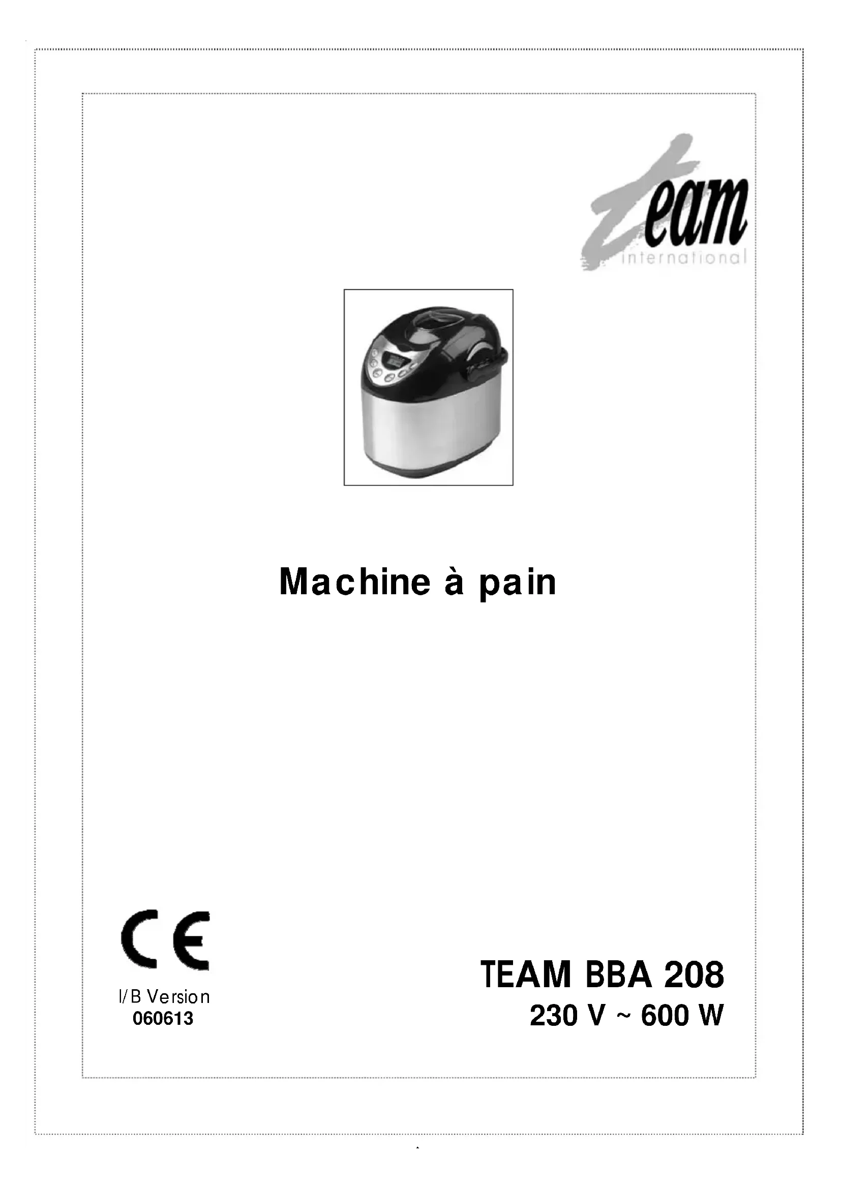 Download the instructions for your Bread maker in PDF format for free! Find your manual BBA 208 - TEAM and take your electronic device back in hand. On this page are published all the documents necessary for the use of your device. BBA 208 by TEAM.