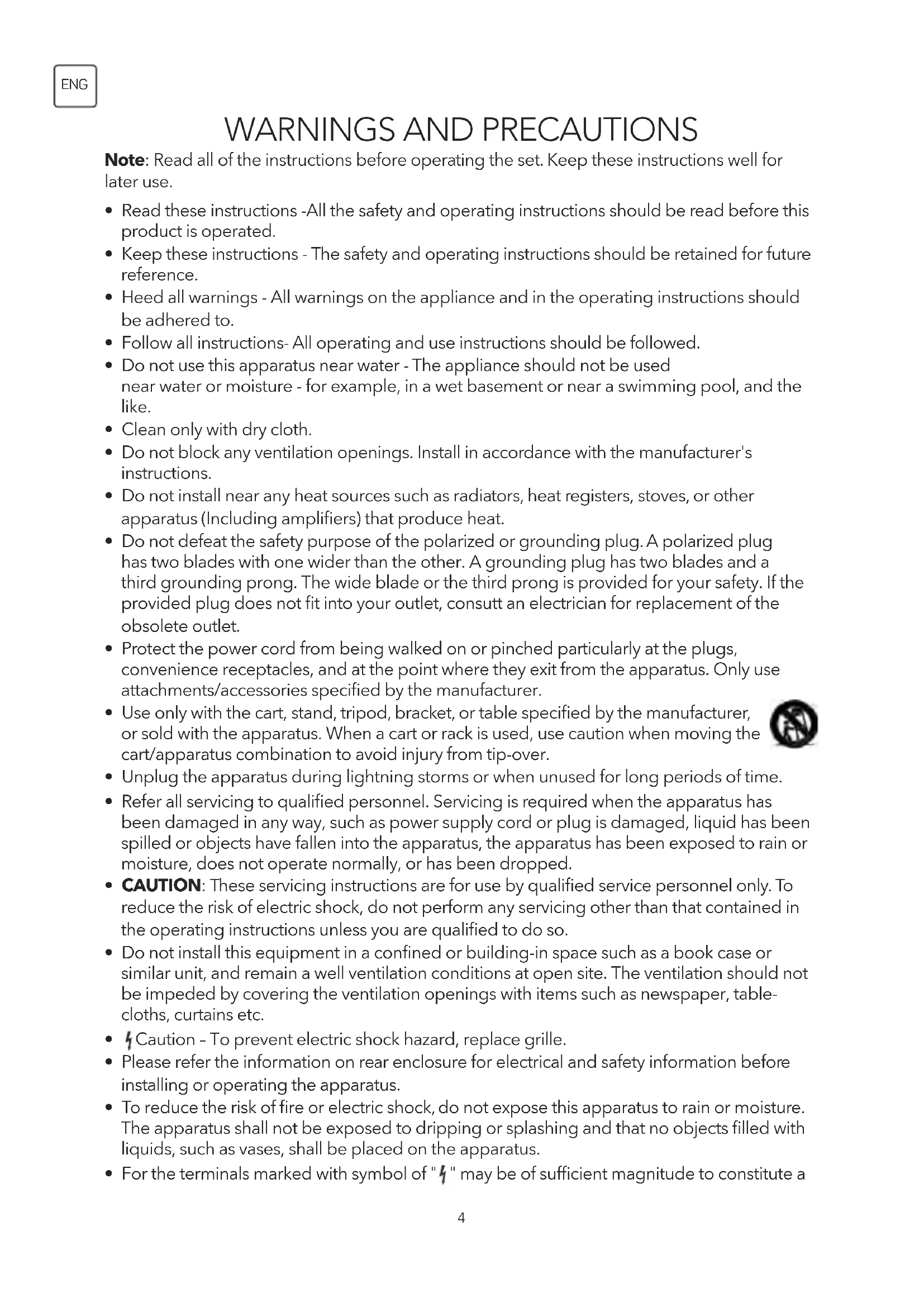- Heed all warnings - All warnings on the appliance and in the operating instructions should be adhered to.