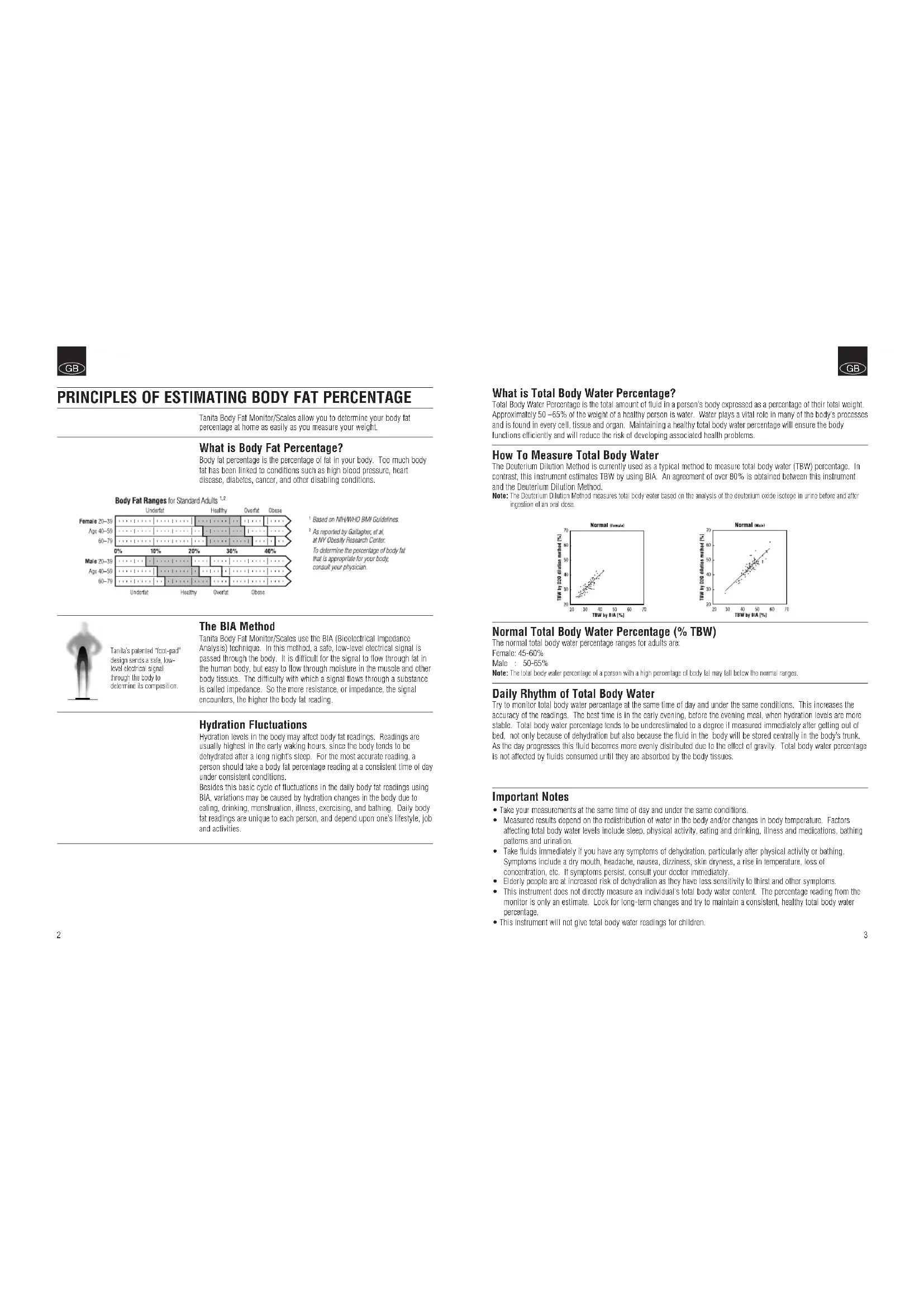 - This instrument will not give total body water readings for children. 3GBGB