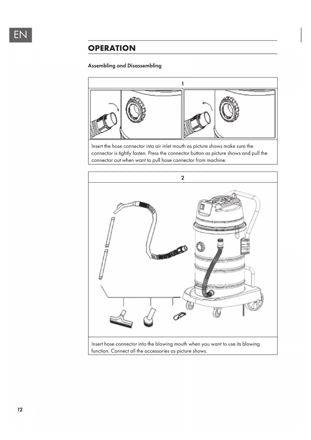 Insert hose connector into the blowing mouth when you want to use its blowing function. Connect all the accessories as picture shows.13