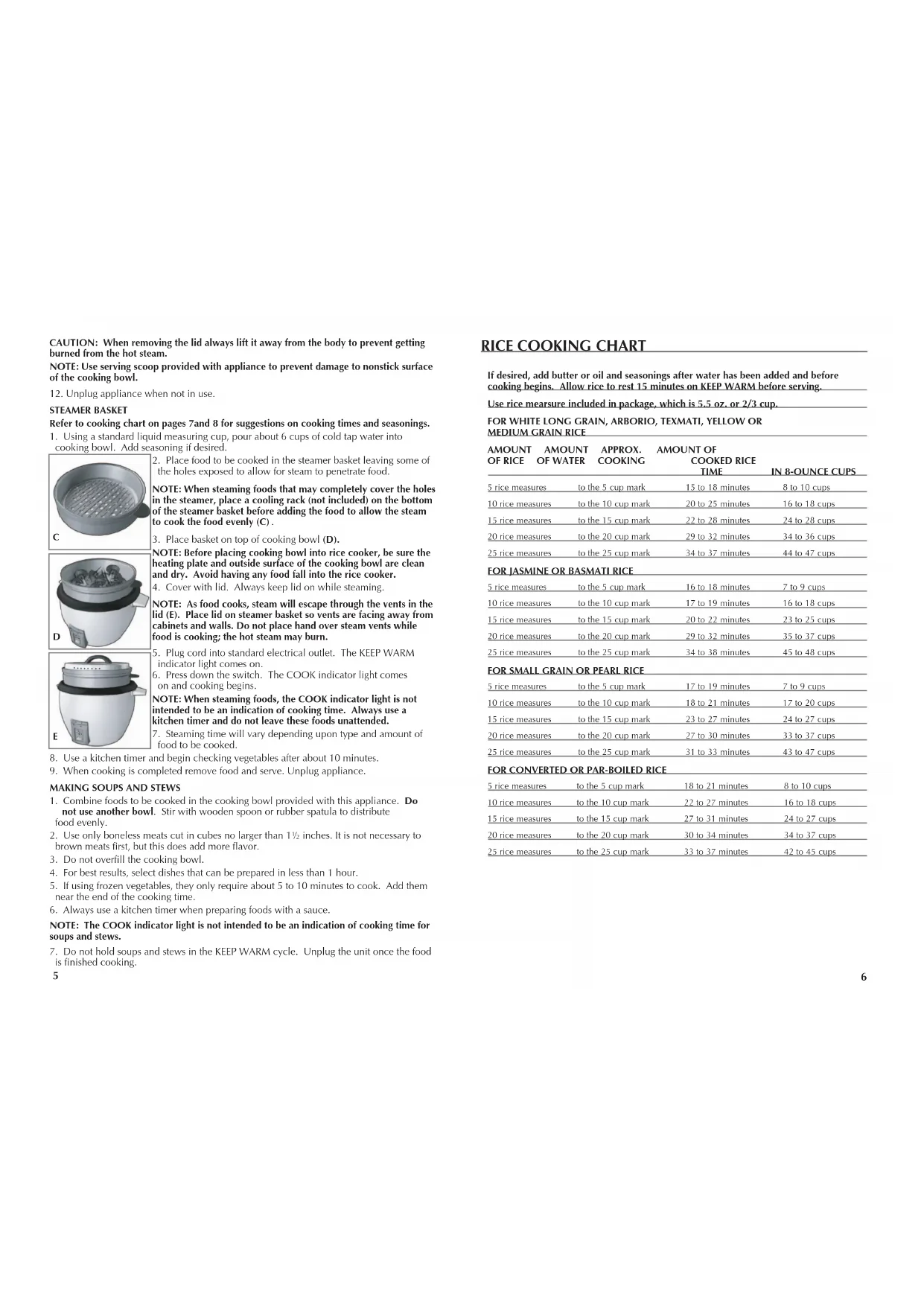 E 7. Steaming time will vary depending upon type and amount of food to be cooked.
