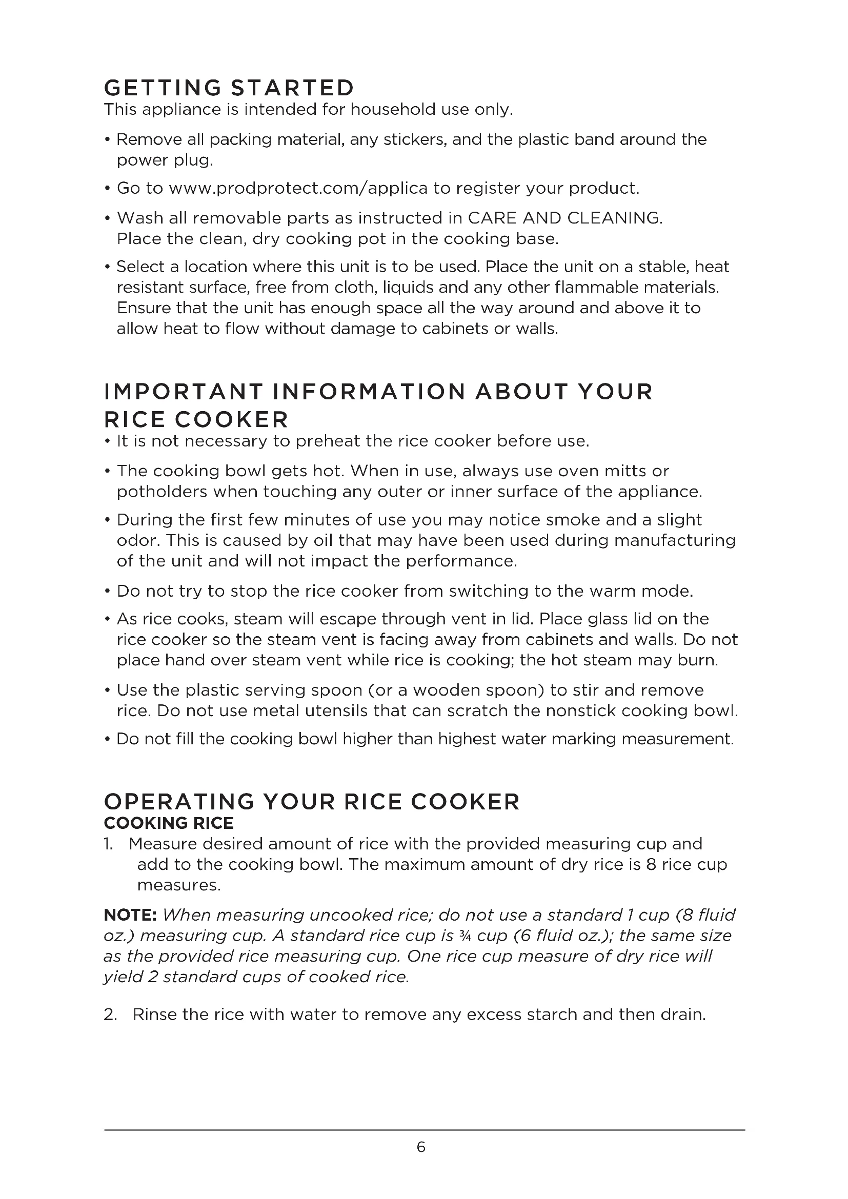 GETTING STARTED This appliance is intended for household use only.