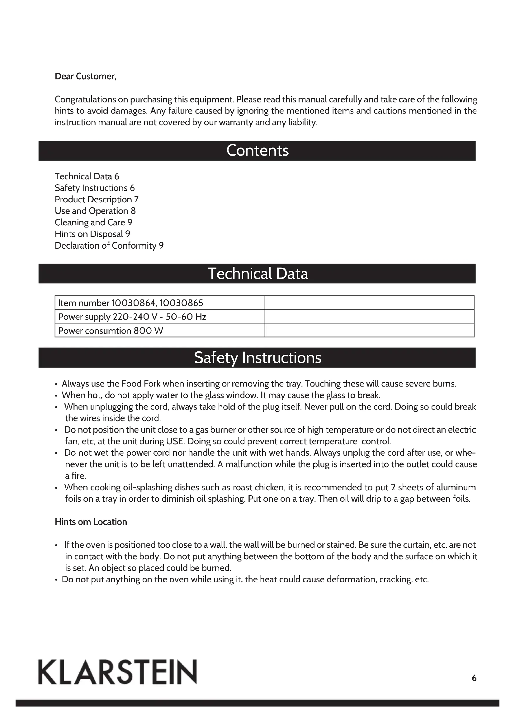 Download the instructions for your Oven in PDF format for free! Find your manual Mini 10030764 - Klarstein and take your electronic device back in hand. On this page are published all the documents necessary for the use of your device. Mini 10030764 by Klarstein.