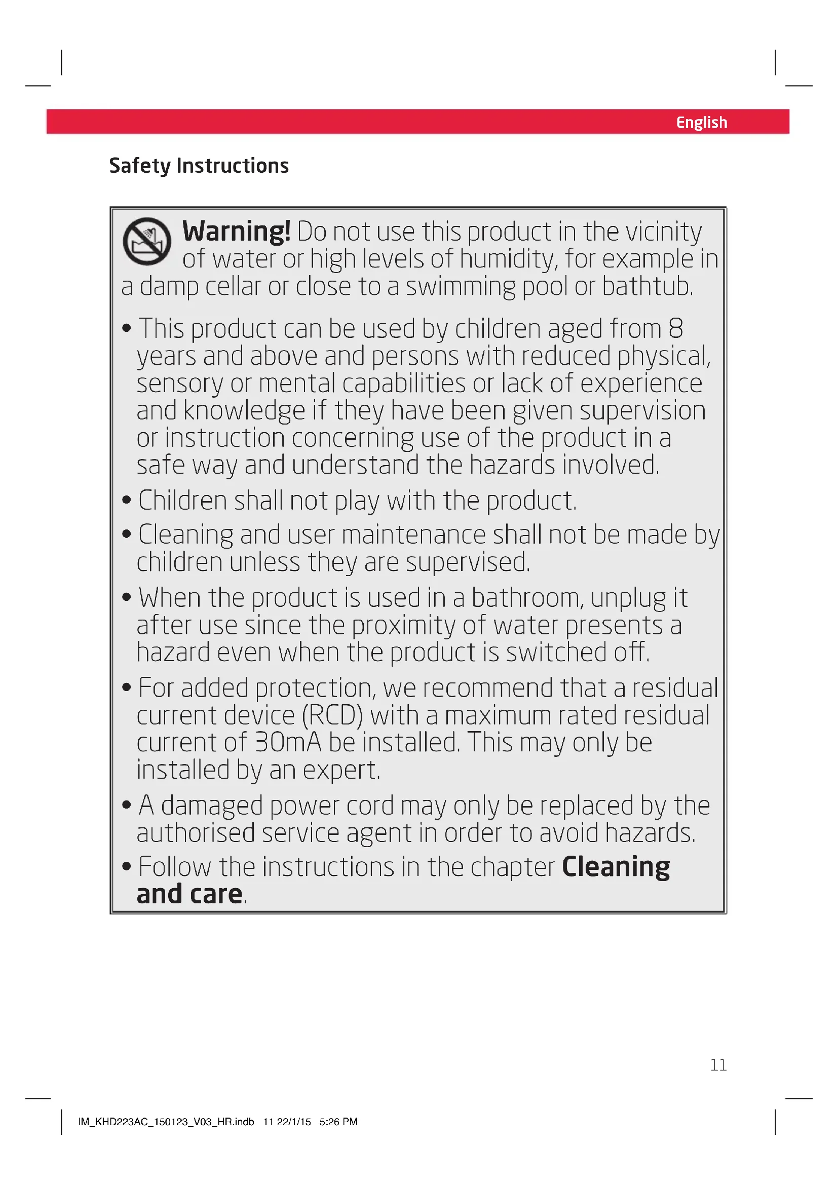 - When the product is used in a bathroom, unplug it after use since the proximity of water presents a hazard even when the product is switched off.