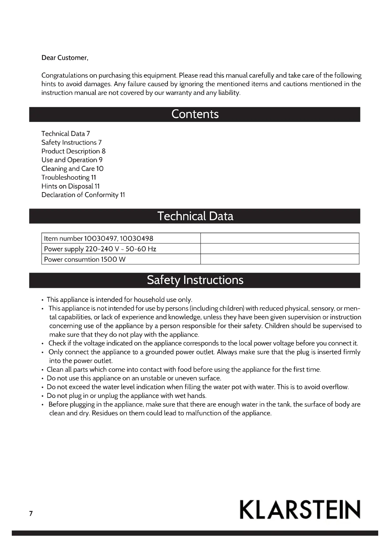 Download the instructions for your Steamer in PDF format for free! Find your manual 10030498 - Klarstein and take your electronic device back in hand. On this page are published all the documents necessary for the use of your device. 10030498 by Klarstein.