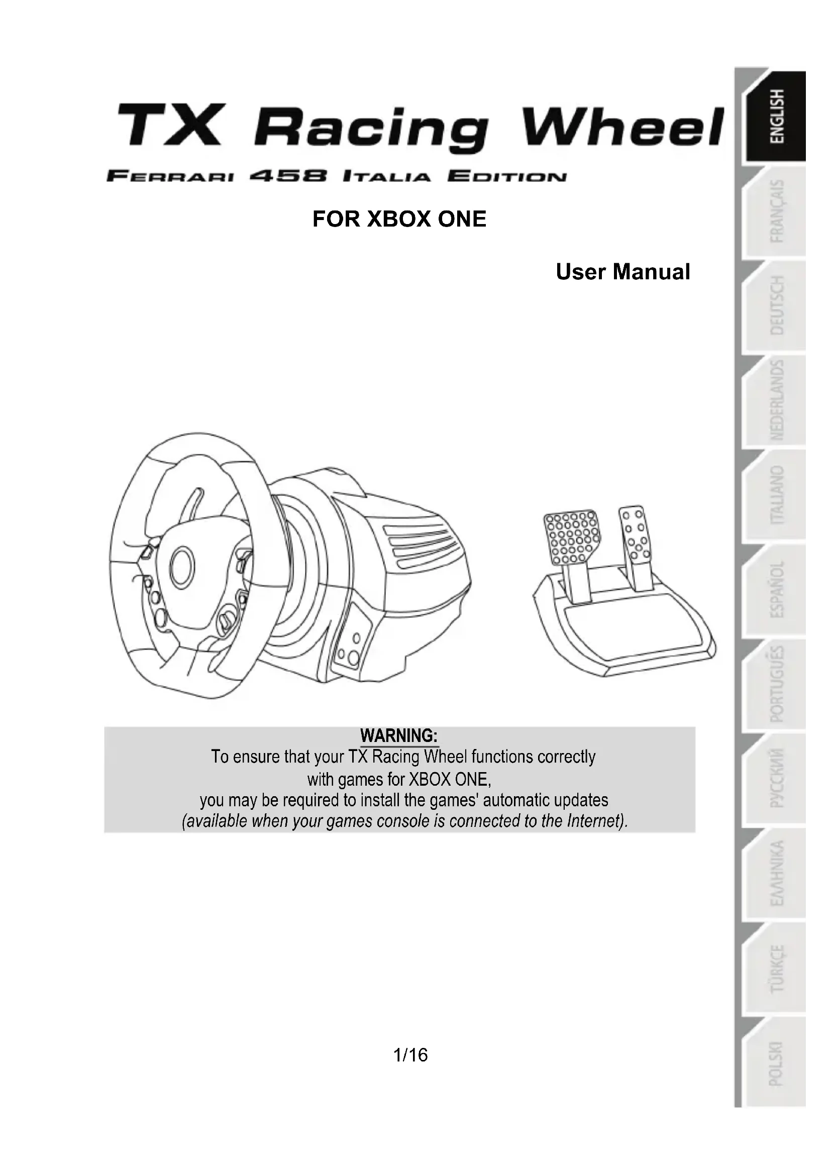USER MANUAL TX Ferrari Italia (Xbox One) THRUSTMASTER