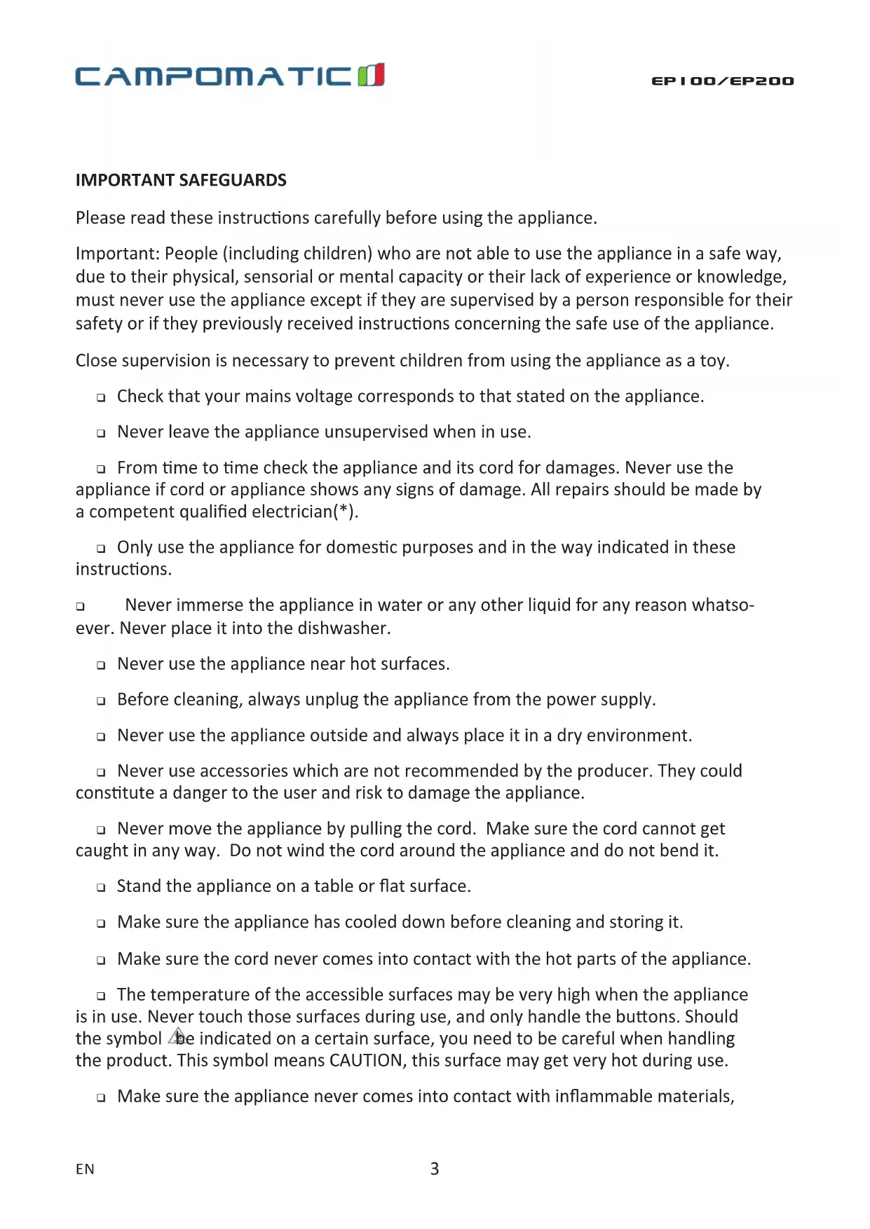 USER MANUAL EP100 Campomatic
