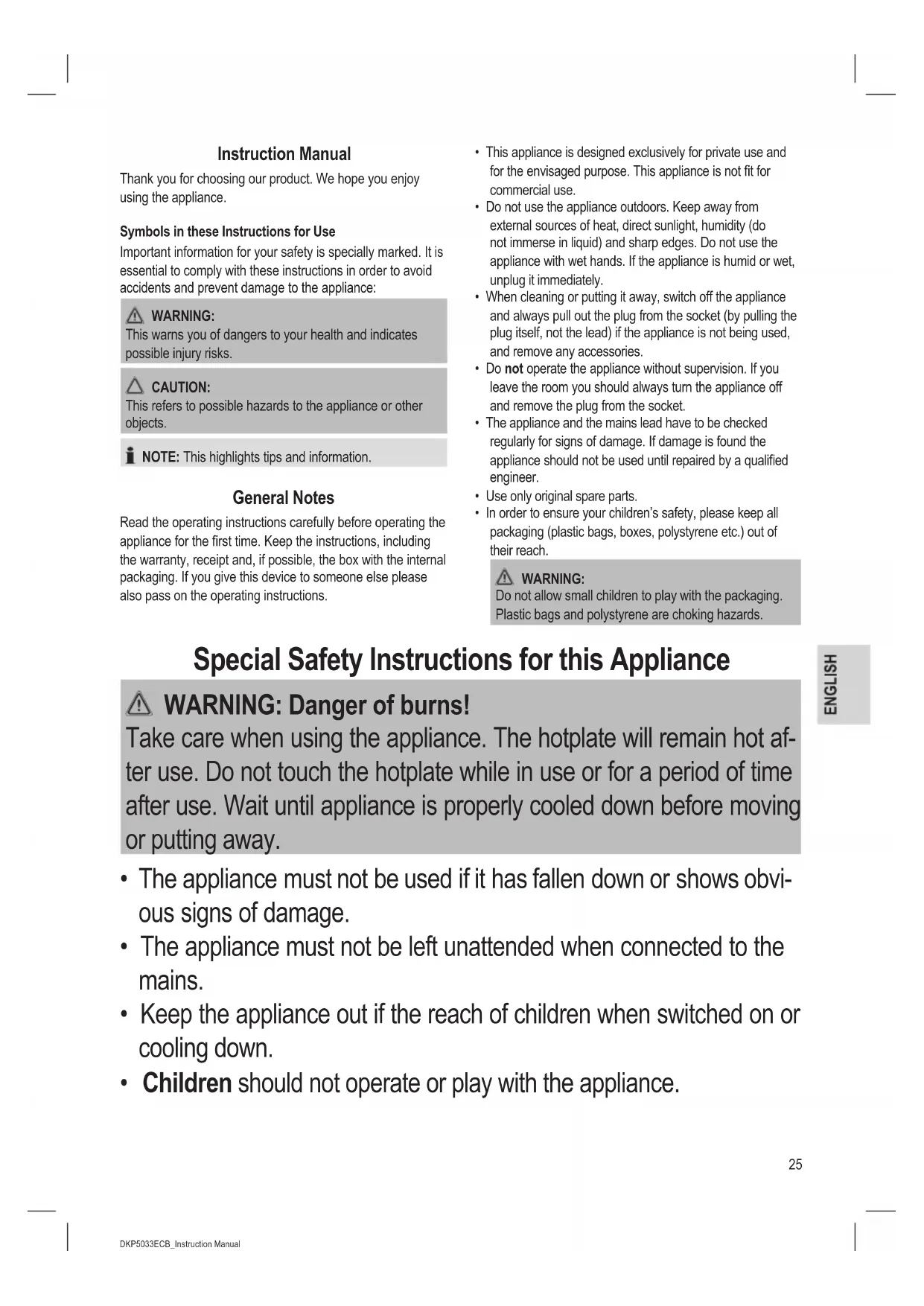 - Children should not operate or play with the appliance.26 DKP5033ECB_Instruction Manual 26.09.16