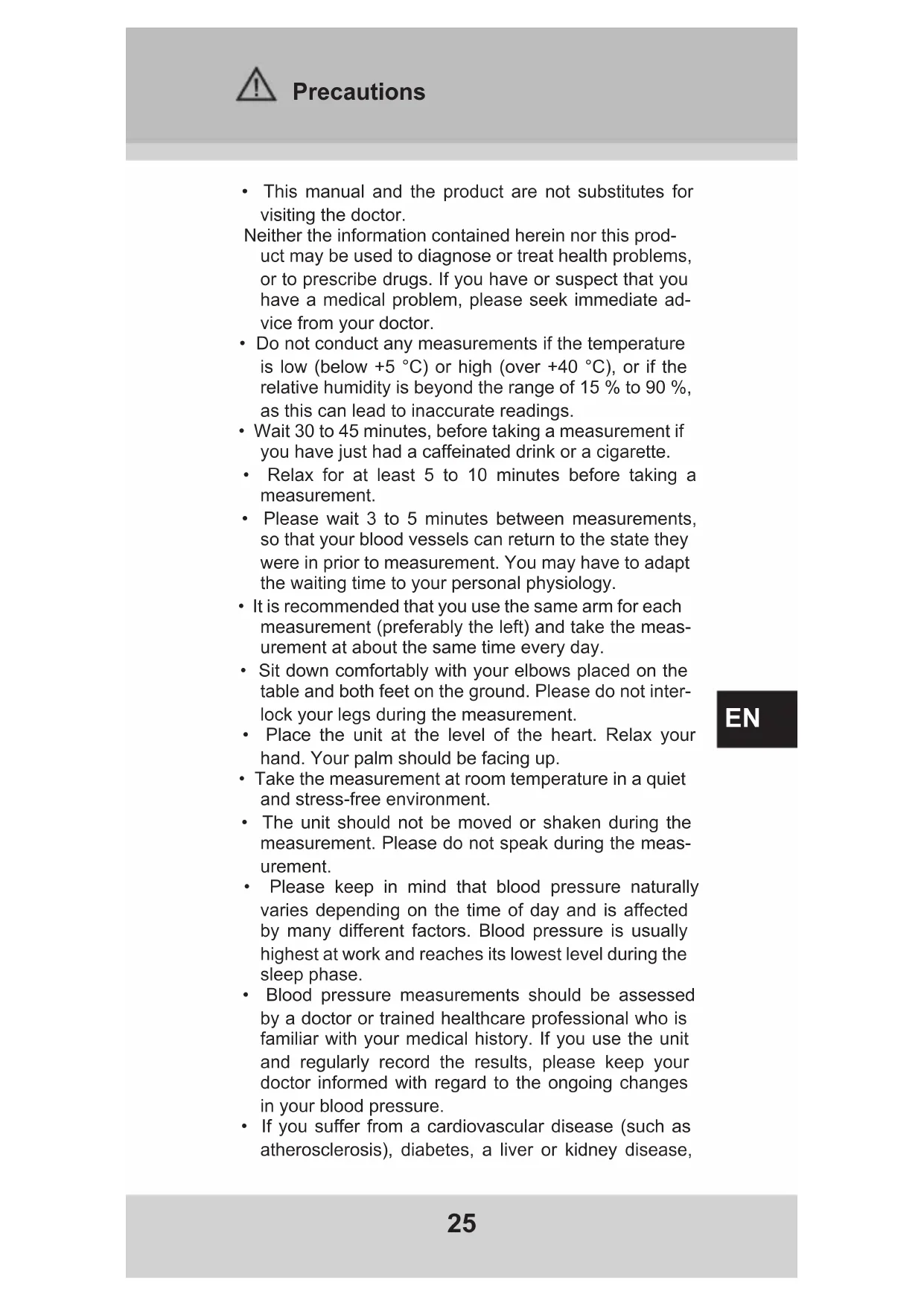 - Relax for at least 5 to 10 minutes before taking a measurement.