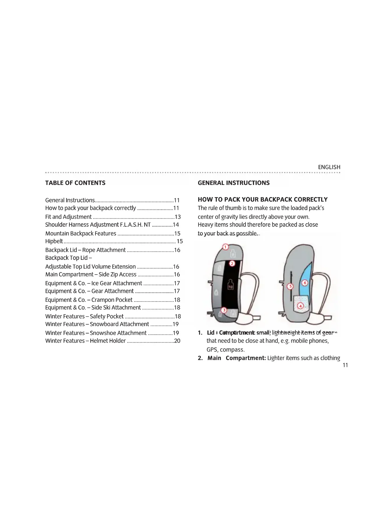 - How to pack your backpack correctly p. 11