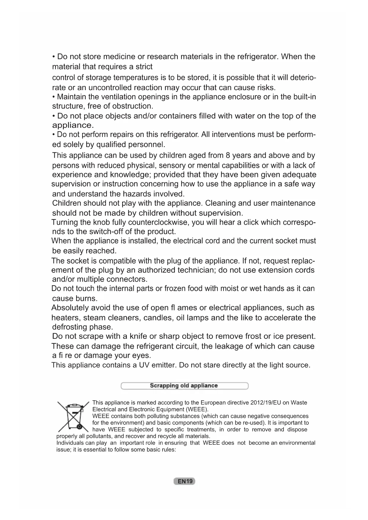 EN18EN control of storage temperatures is to be stored, it is possible that it will deterio- rate or an uncontrolled reaction may occur that can cause risks. or in the built-in structure, free of obstruction. he top of the appliance.