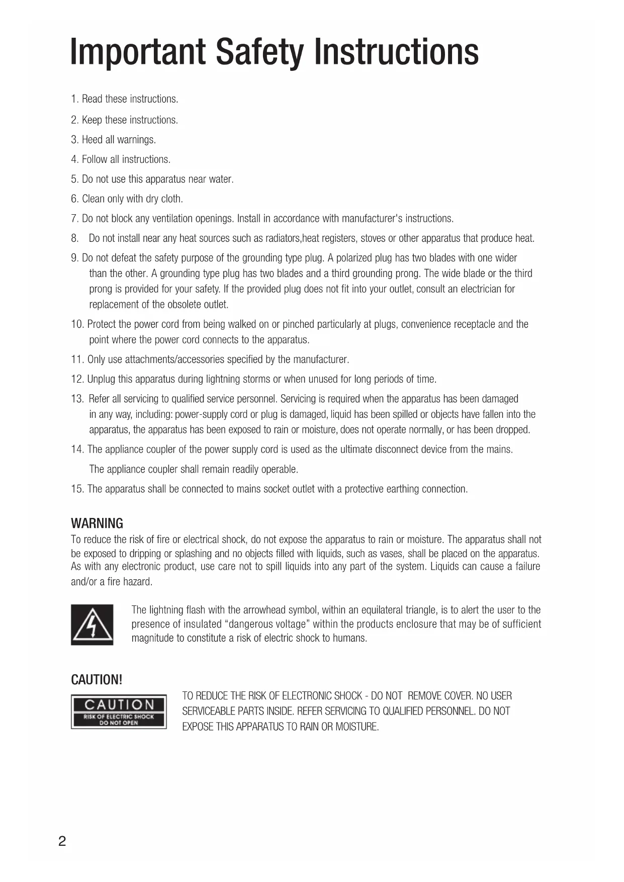 12. Unplug this apparatus during lightning storms or when unused for long periods of time.