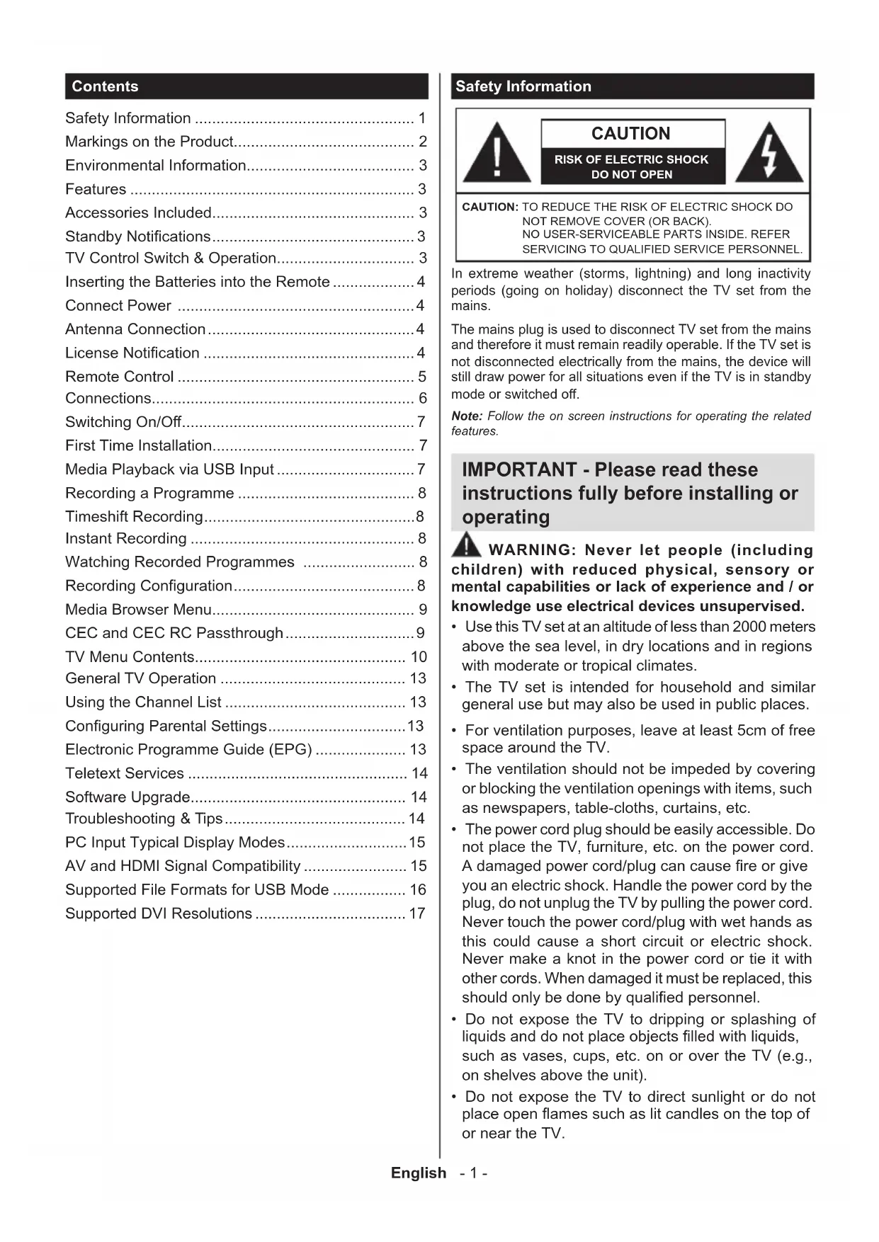 - Use this TV set at an altitude of less than 2000 meters above the sea level, in dry locations and in regions with moderate or tropical climates.