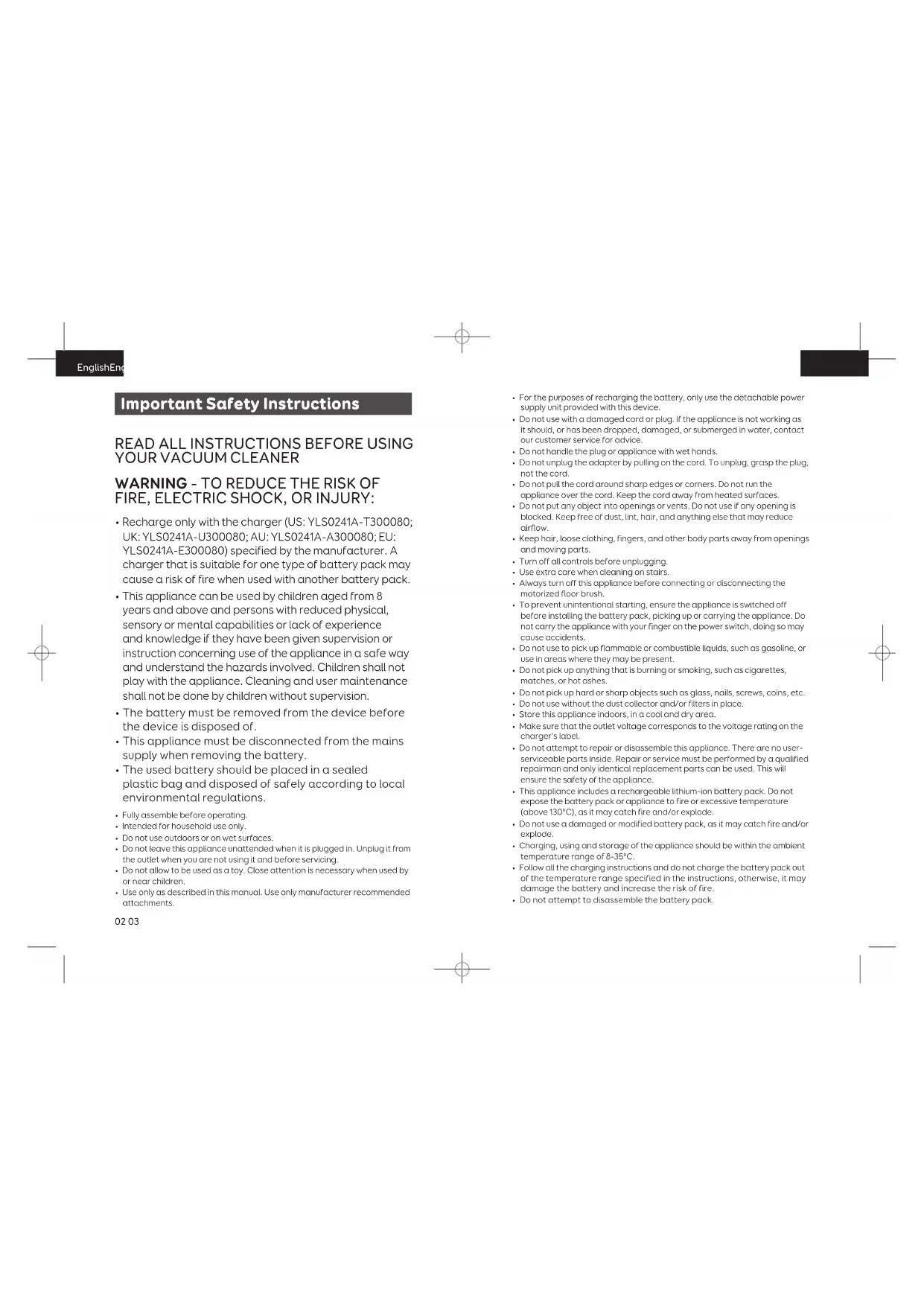 - Do not attempt to disassemble the battery pack. Important Safety Instructions04 05 English English