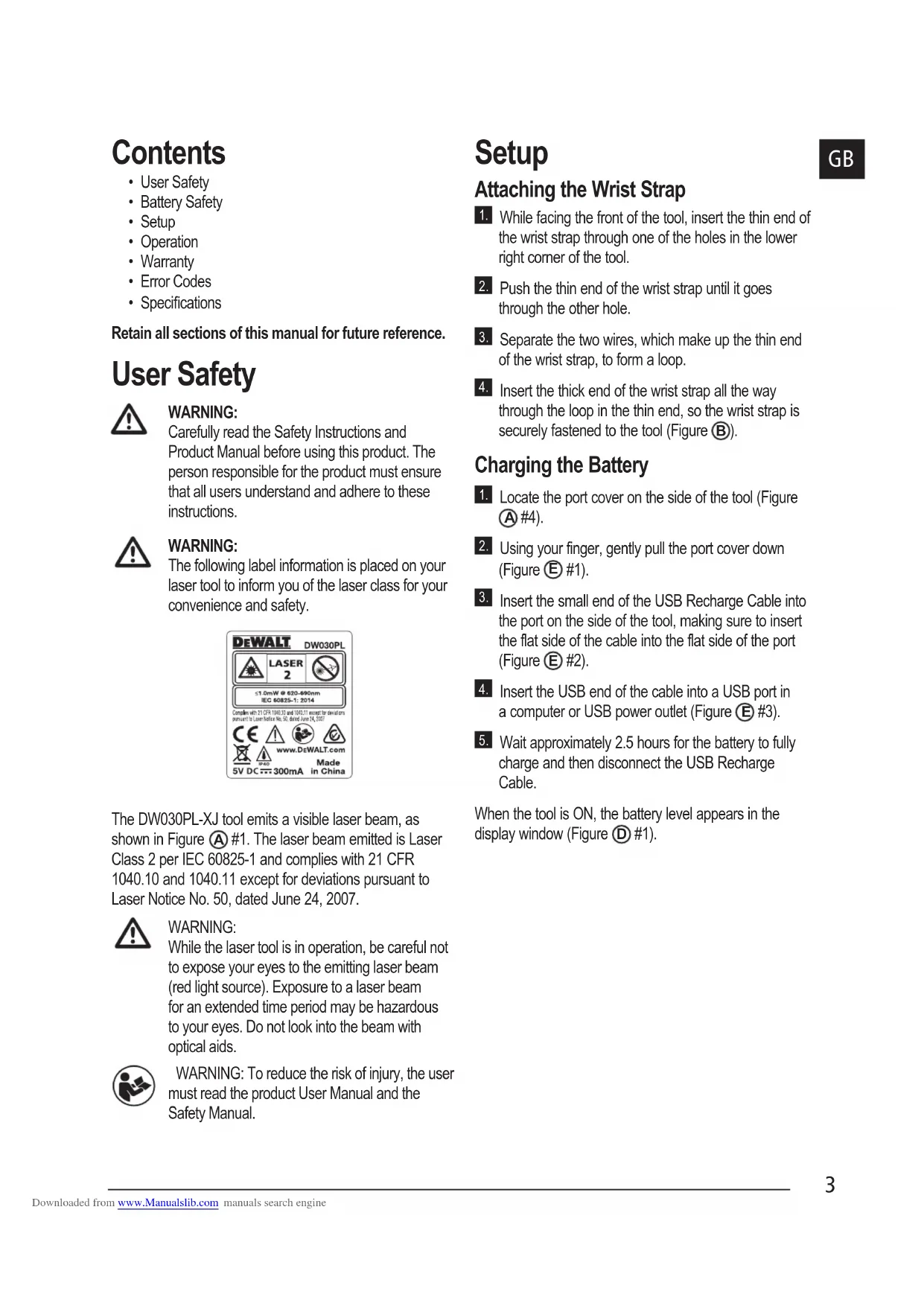 USER MANUAL DW030PLXJ DEWALT