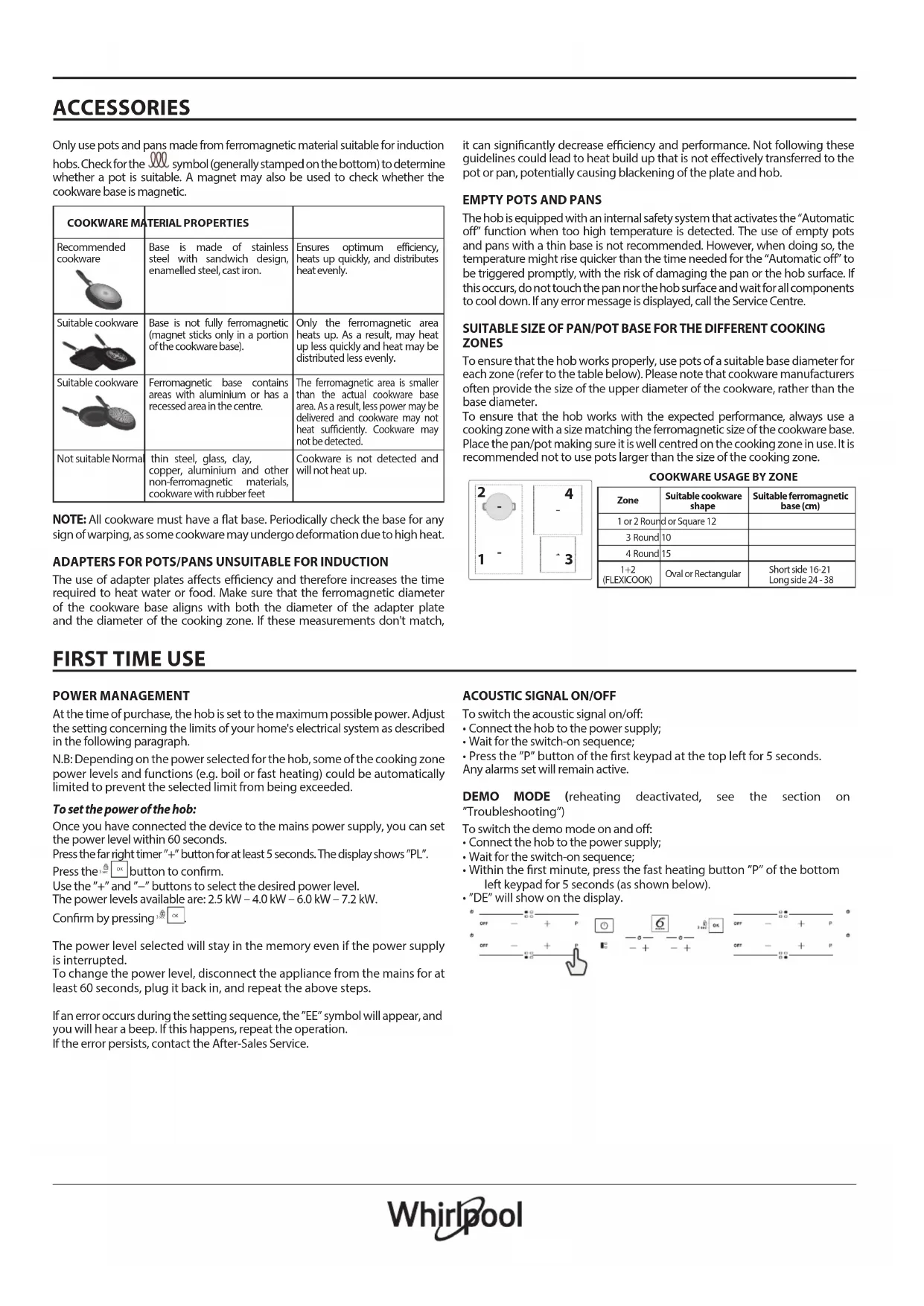 - ”DE” will show on the display. ACCESSORIES Only use pots and pans made from ferromagnetic material suitable for induction hobs. Check for the symbol (generally stamped on the bottom) to determine whether a pot is suitable. A magnet may also be used to check whether the cookware base is magnetic.
