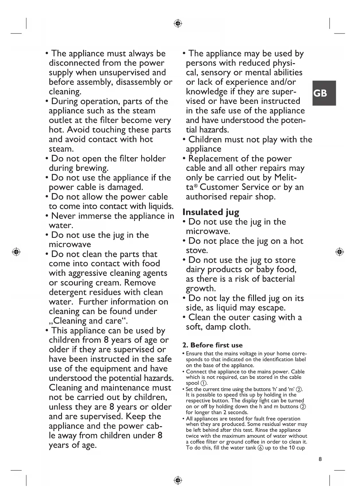 The appliance complies with all valid United Kingdom guidelines. The appliance has been tested and certified by an independent test institute. Please read the safety notes and the operating manual in full. To avoid danger you must pay attention to the safety and operating instructions. Melitta