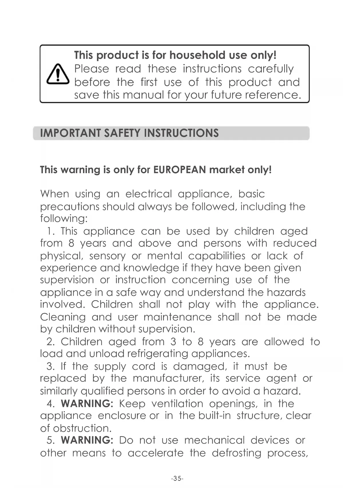 other means to accelerate the defrosting process, -35-o t h e r t h a n t h o s e r e c o m m e n d e d b y t h e manufacturer.