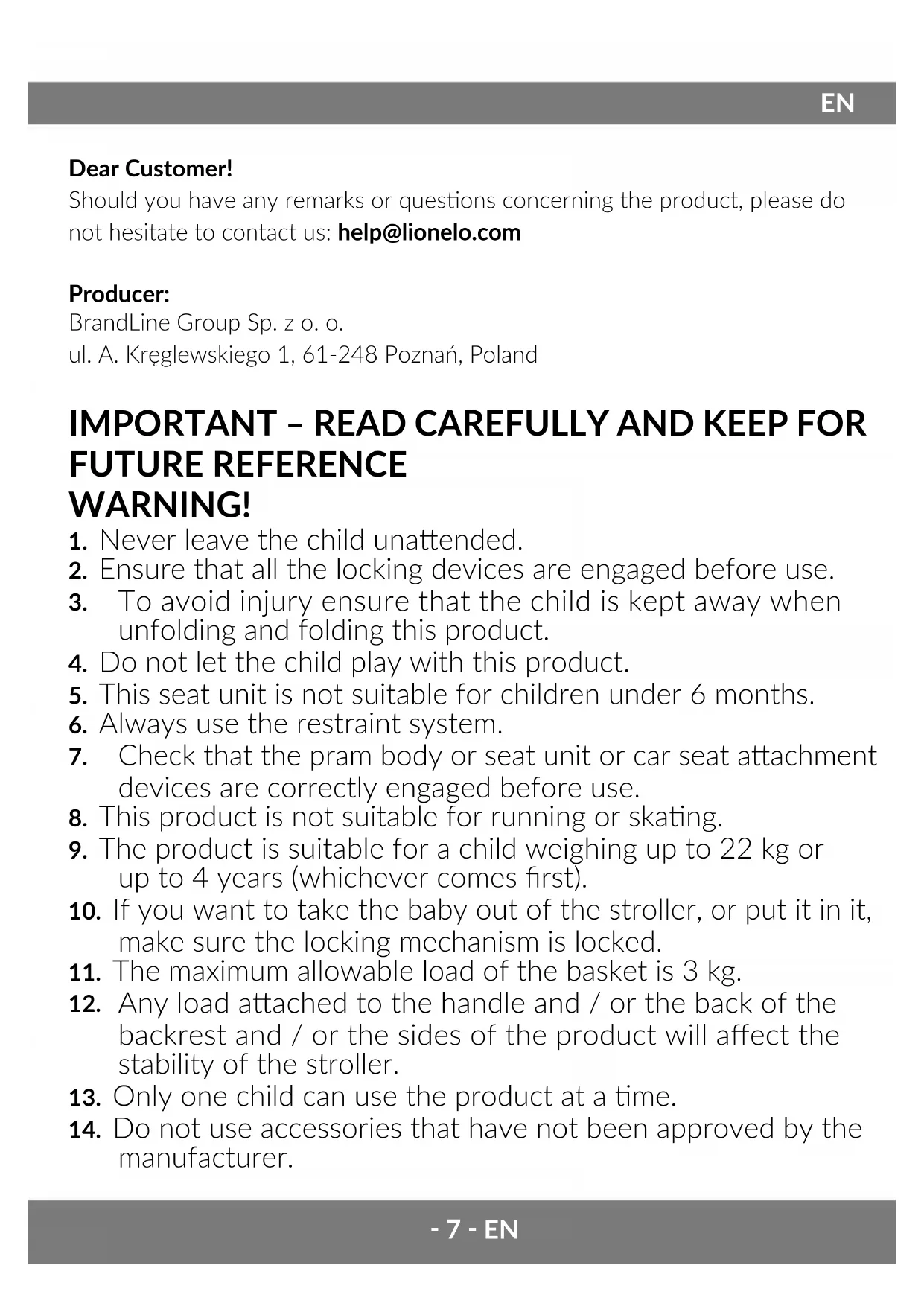 Cloe - Stroller Lionelo - Free user manual and instructions