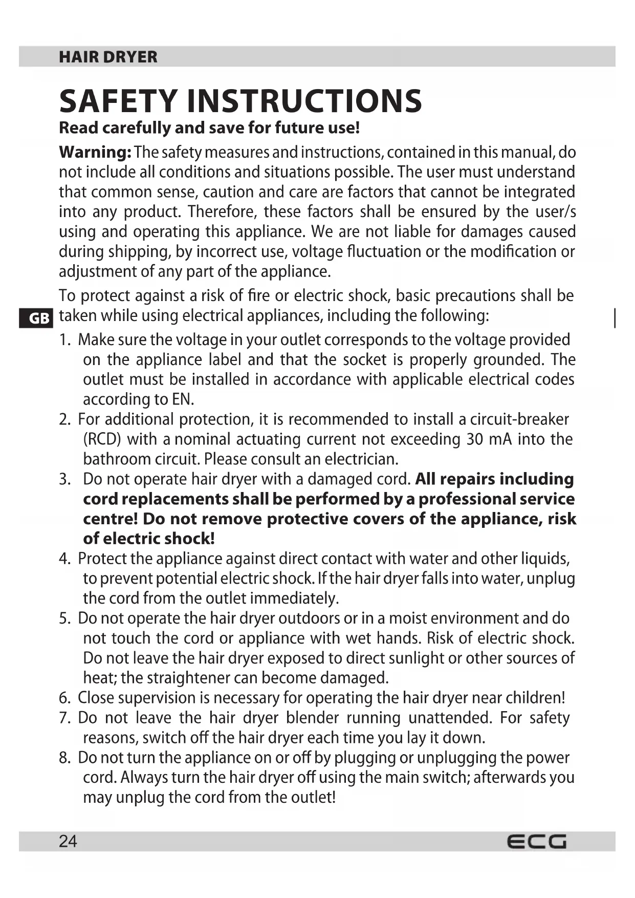 VV 2200 - Hair dryer ECG - Free user manual and instructions