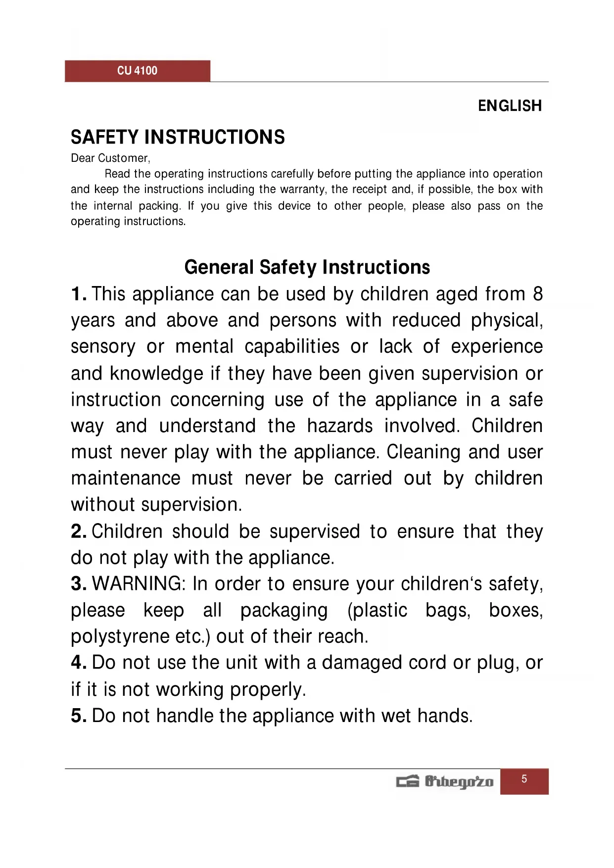 Find the device manual for free CU 4100 Orbegozo in PDF.