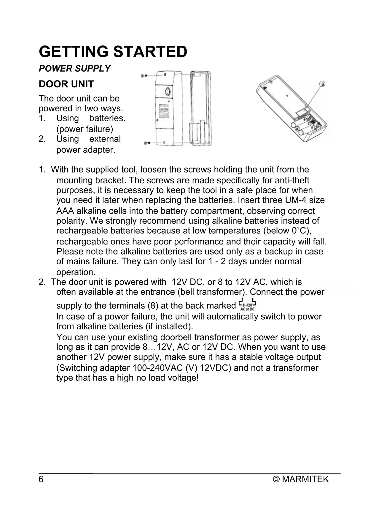 GETTING STARTED POWER SUPPLY DOOR UNIT The door unit can be powered in two ways.