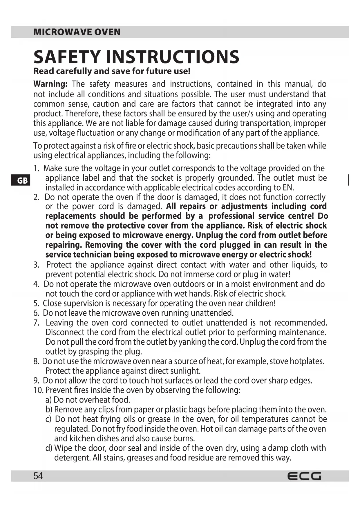 MTD 2072 GSE - Microwave Oven ECG - Free user manual and instructions