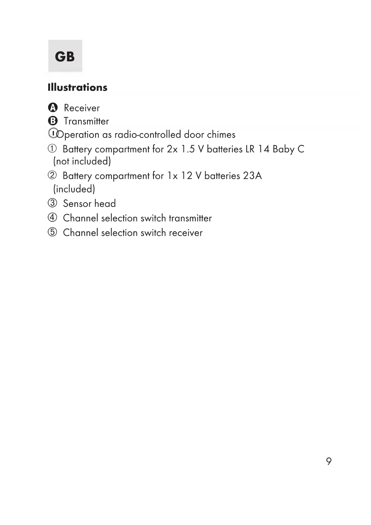 ANL_04443_14903.indd 9 18.02.2019 14:28:3310 11 Dear customer, We would like to thank you for purchasing our radio-controlled door chimes. They offer you enormous product advantages and are easy to operate and install. Please read the following operating instruc- tions carefully before installing and using the door chimes. Contents