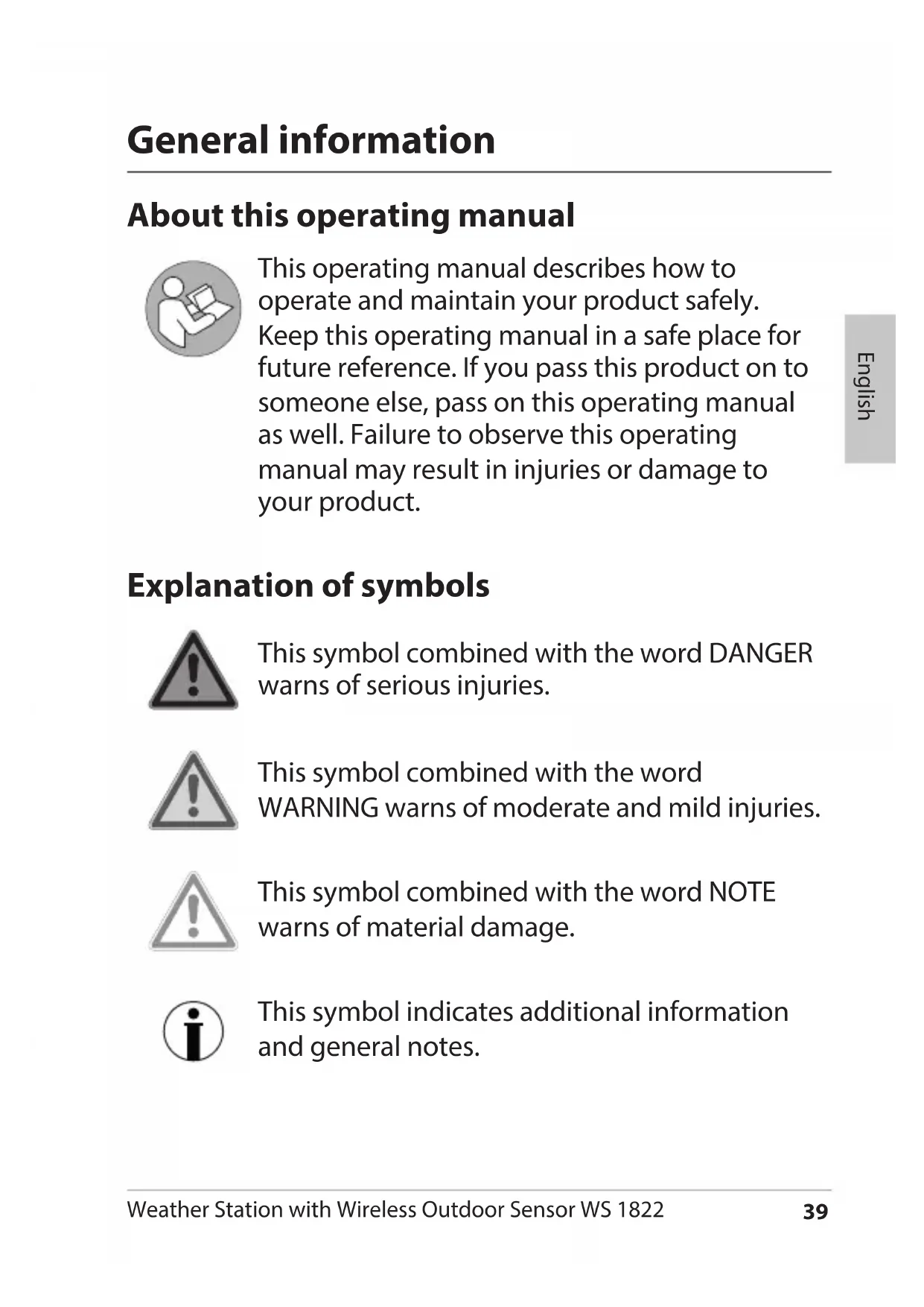 suitable, see "Choosing a location".51 Weather Station with Wireless Outdoor Sensor WS 1822 English