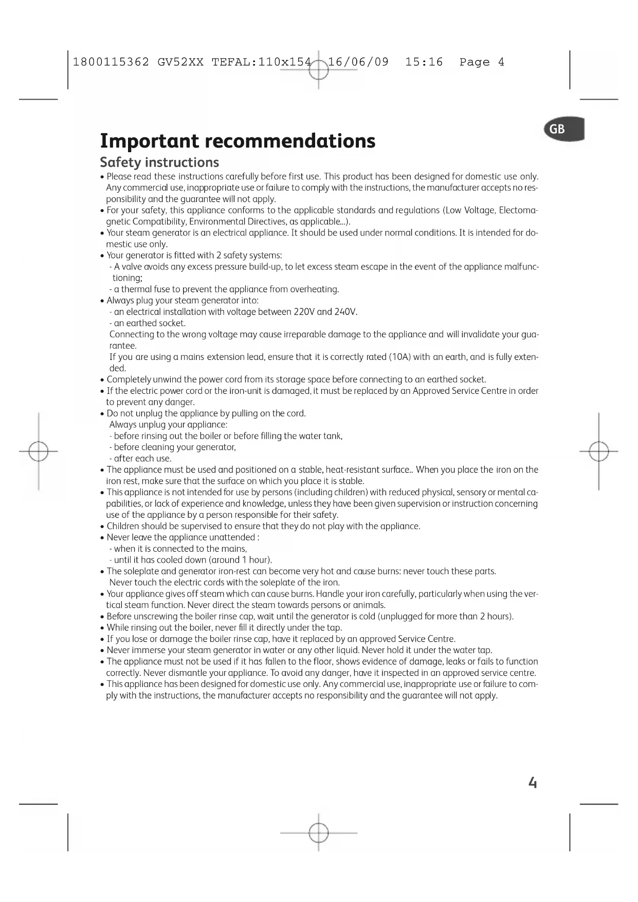 Download the instructions for your Iron in PDF format for free! Find your manual Easy Pressing GV5223 - TEFAL and take your electronic device back in hand. On this page are published all the documents necessary for the use of your device. Easy Pressing GV5223 by TEFAL.