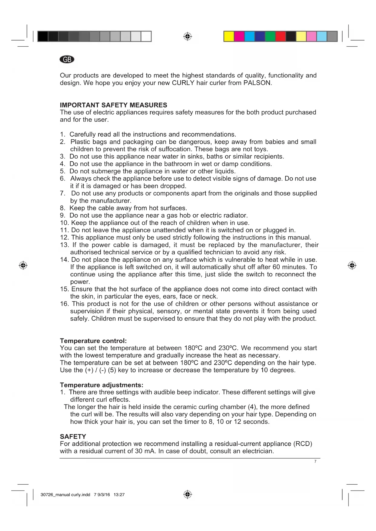 Curly 30726 - Curling iron PALSON - Free user manual and instructions