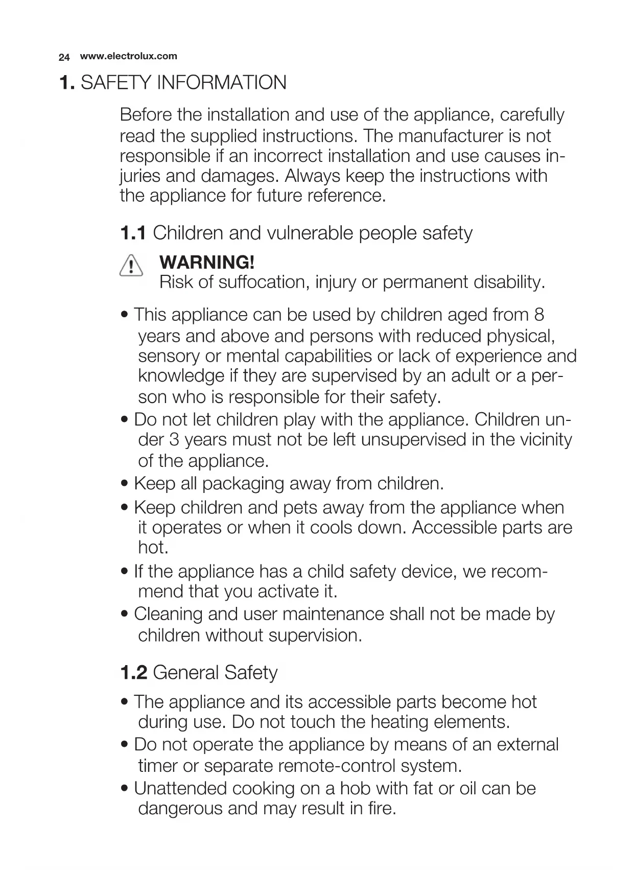 - This appliance can be used by children aged from 8 years and above and persons with reduced physical, sensory or mental capabilities or lack of experience and knowledge if they are supervised by an adult or a per- son who is responsible for their safety.