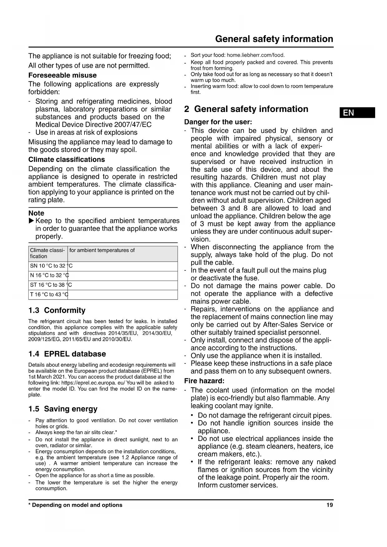 Use in areas at risk of explosions Misusing the appliance may lead to damage to the goods stored or they may spoil. Climate classifications Depending on the climate classification the appliance is designed to operate in restricted ambient temperatures. The climate classifica- tion applying to your appliance is printed on the rating plate. Note