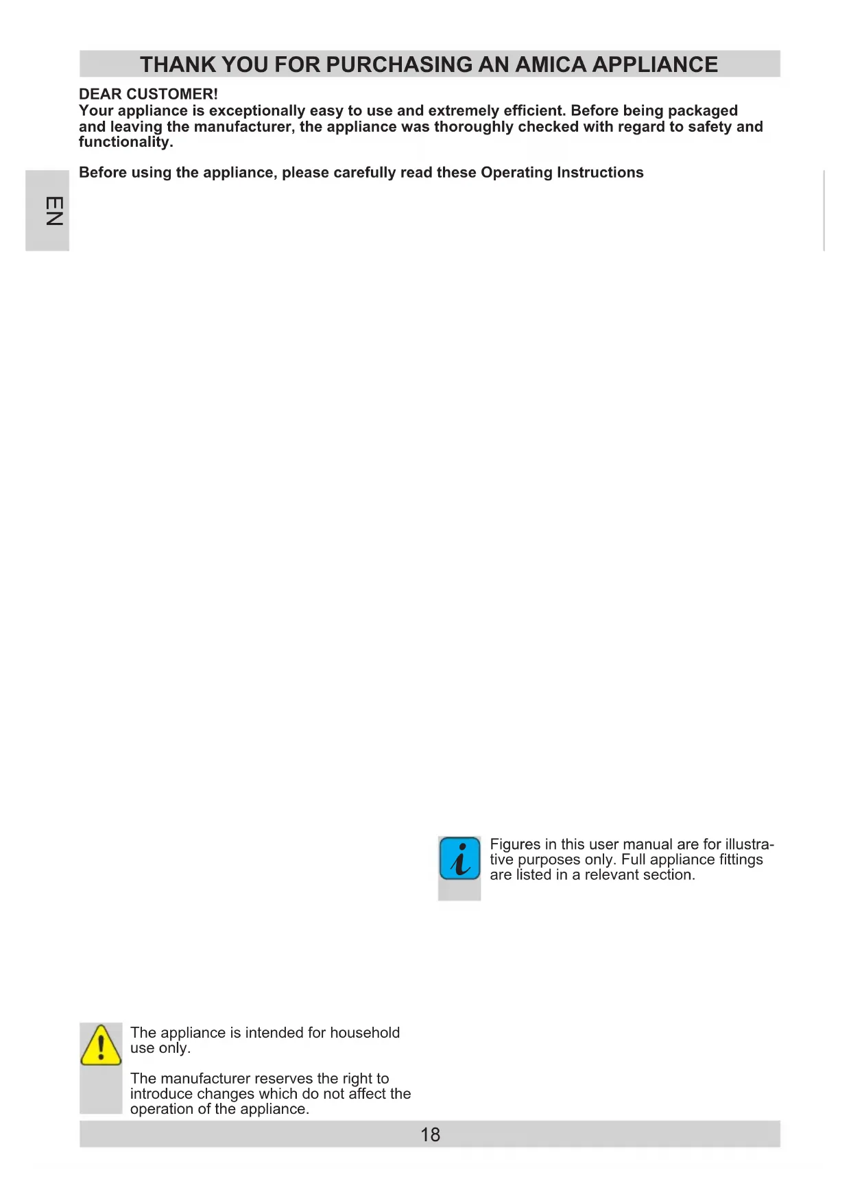 Figures in this user manual are for illustra- tive purposes only. Full appliance ttings are listed in a relevant section. EN19