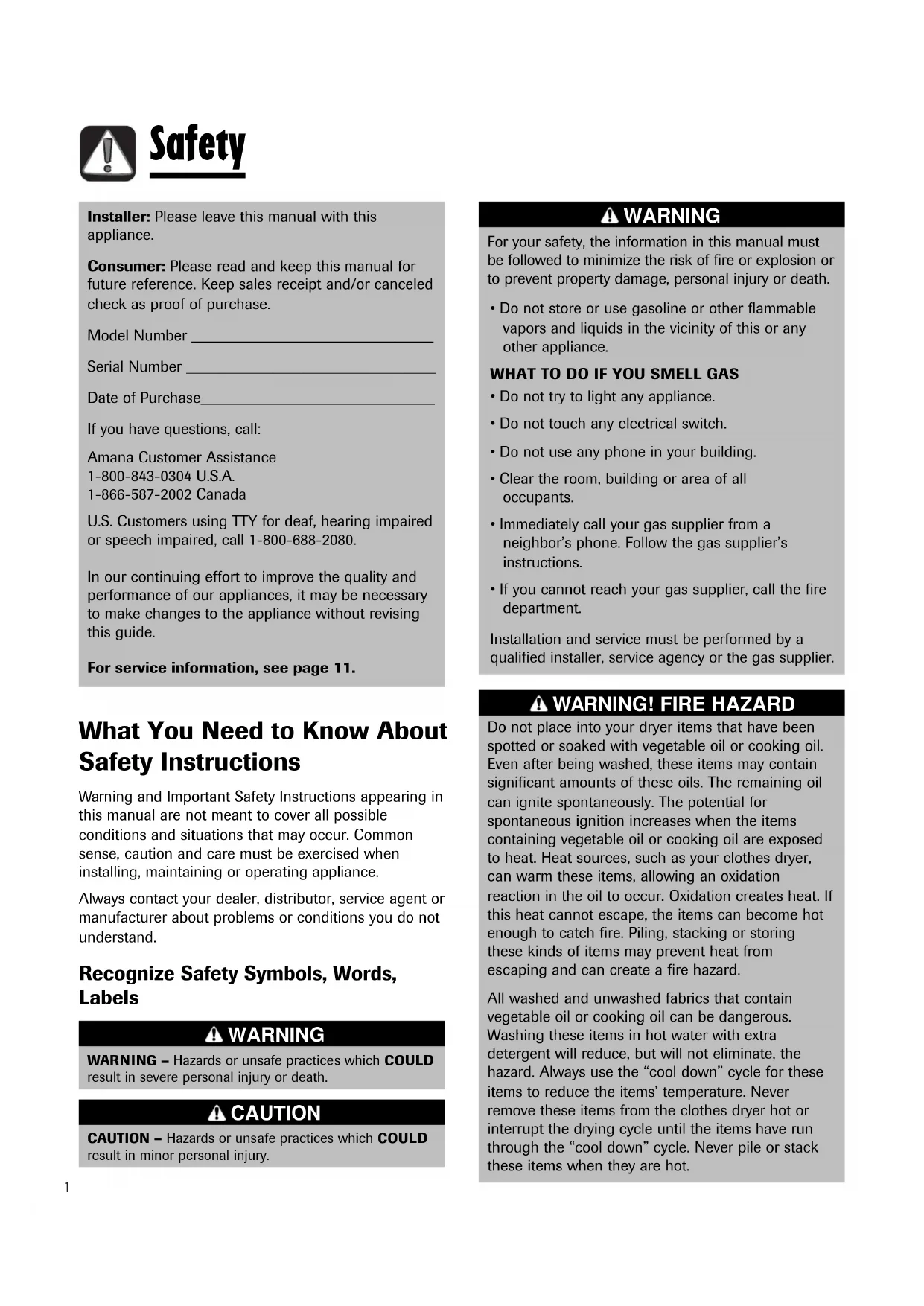 Important Safety Notice & Warning The California Safe Drinking Water and Toxic Enforcement Act of 1986 (Proposition 65) requires the Governor of California to publish a list of substances known to the State of California to cause cancer or reproductive harm, and requires businesses to warn customers of potential exposures to such substances. Users of this appliance are hereby warned that the burning of gas can result in low–level exposure to some of the listed substances, including benzene, formaldehyde, and soot, due primarily to the incomplete combustion of natural gas or liquid petroleum (LP) fuels. Exhaust ducts should be kept free of obstructions and properly exhausted dryers will minimize exposure. Safety
