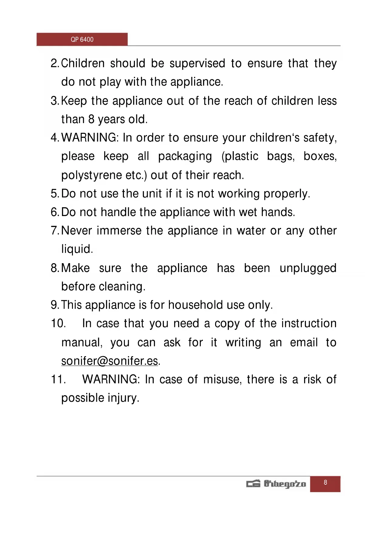 Find the device manual for free QP 6400 Orbegozo in PDF.
