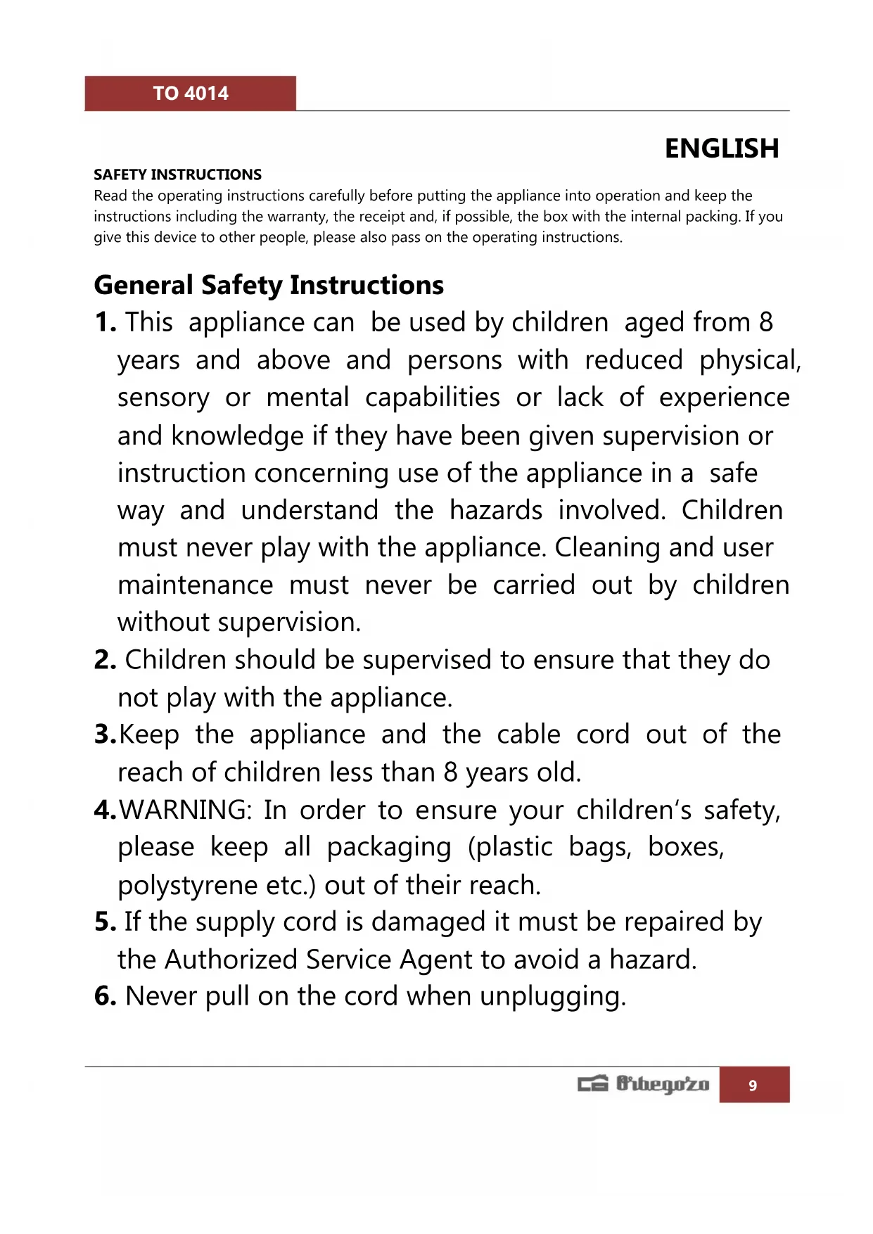 Find the device manual for free TO 4014 Orbegozo in PDF.