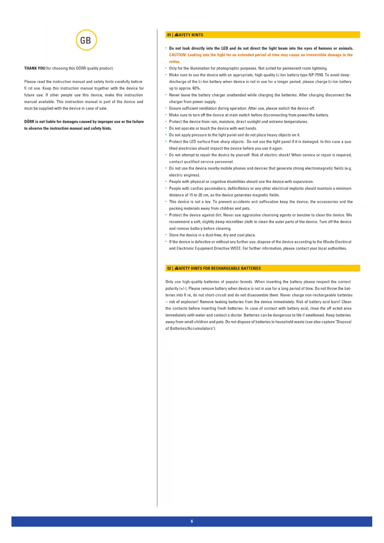 02 | SAFETY HINTS FOR RECHARGEABLE BATTERIES