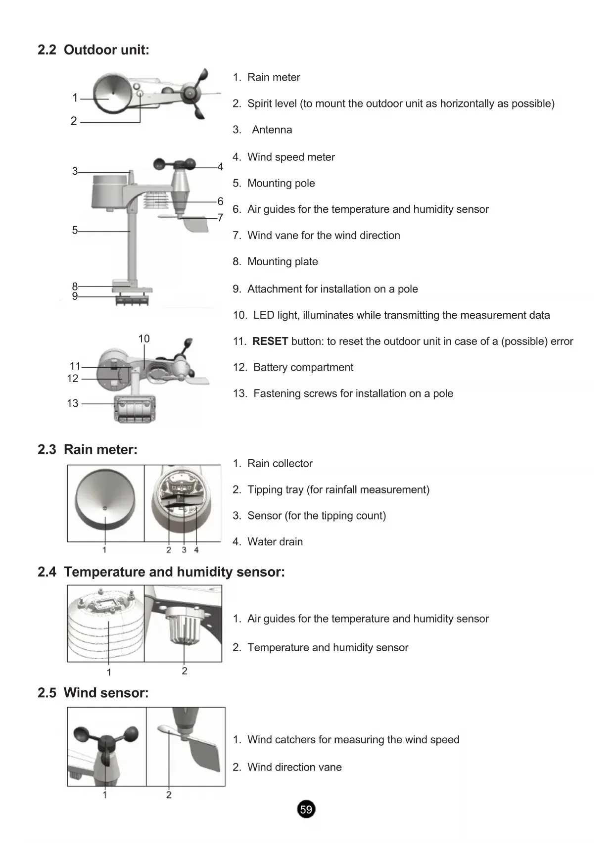 8.2 Outdoor temperature and humidity sensor: