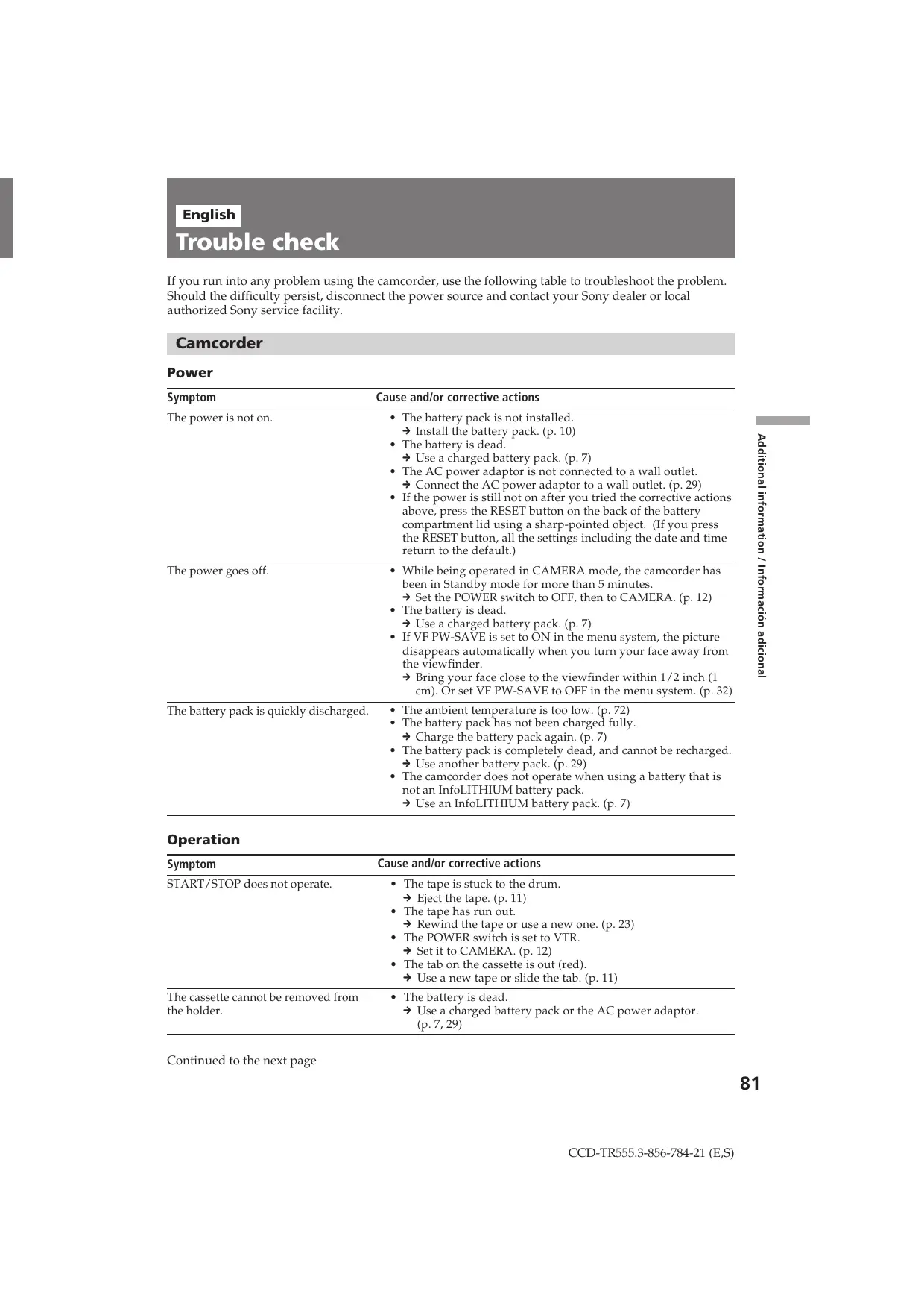 - COUNTER RESET D, E Printed in Japan CCD-TR555.3-856-784-21(E,S) p. 14